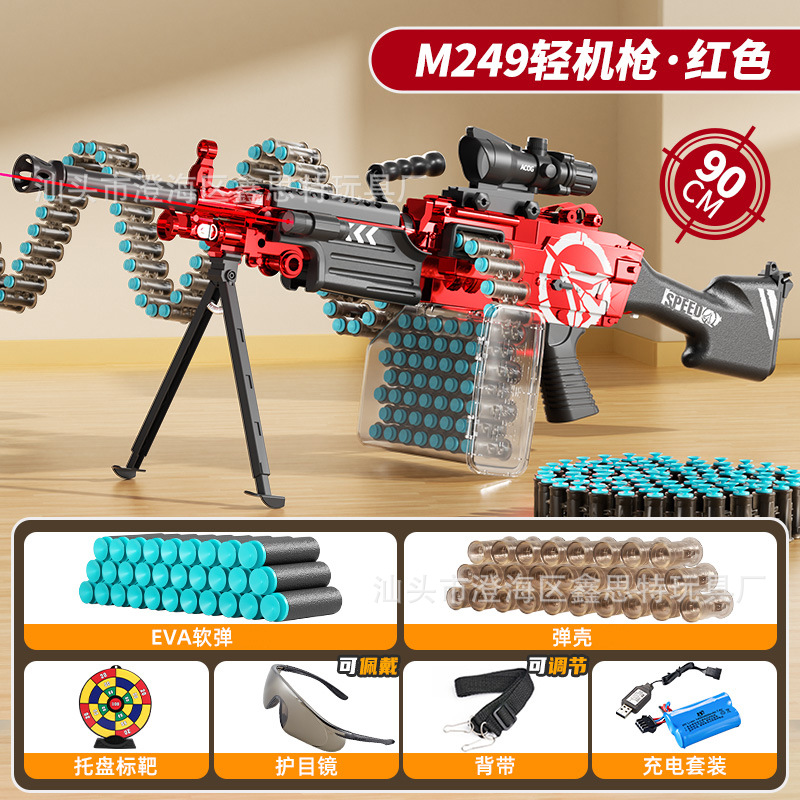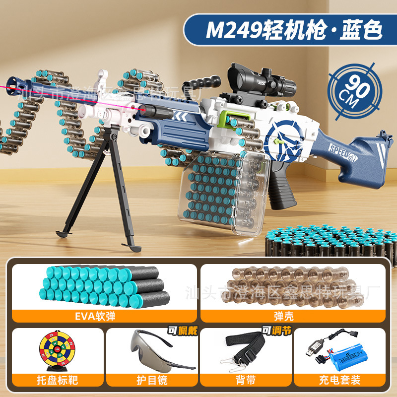 M249 큰 파인애플 전기 부드러운 총알 총 자체 포함 장거리 가벼운 기관총 어린이 소년 장난감 총스토어 가기