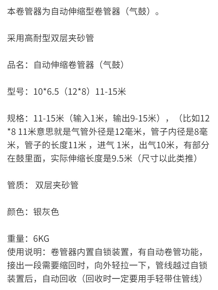 자동 텔레스코픽 공기 파이프 가스 드럼 파이프 코일러 복구 자동 수리 공기총 호스 12*8MM 청소스토어 가기