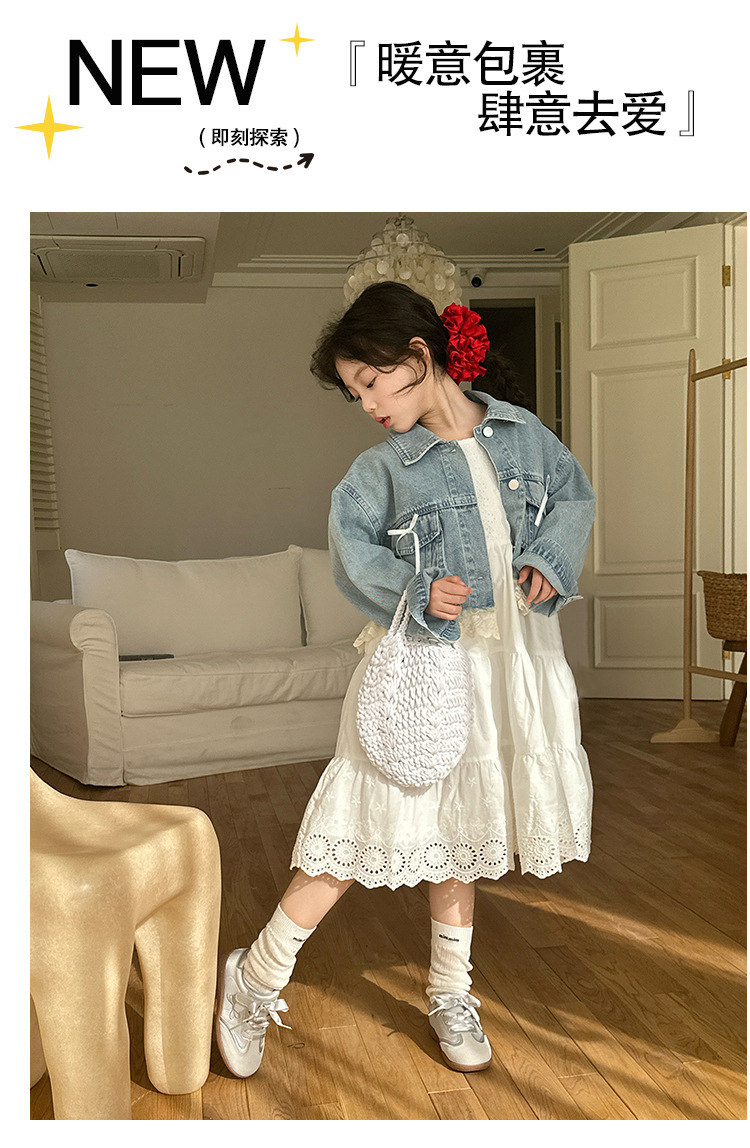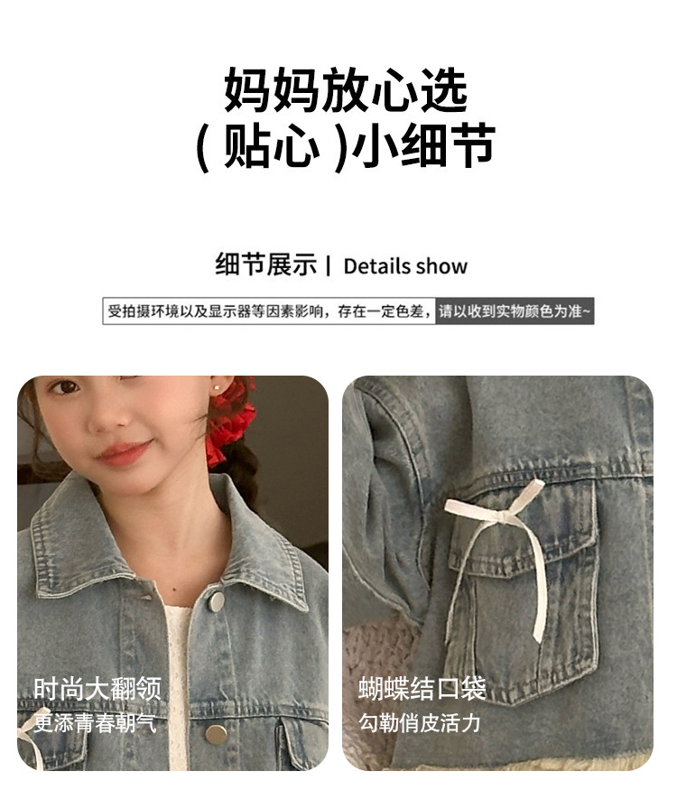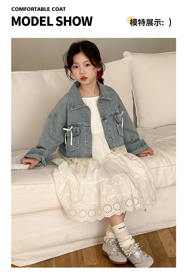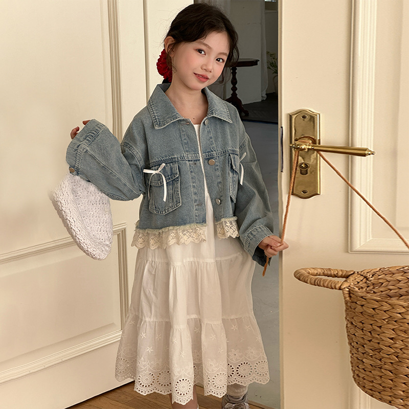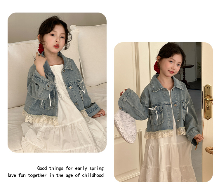 소녀의 코트 봄 한국 스타일 느슨한 캐주얼 유행 아동복 서양식 소녀 유행 데님 탑 후주 Zhili