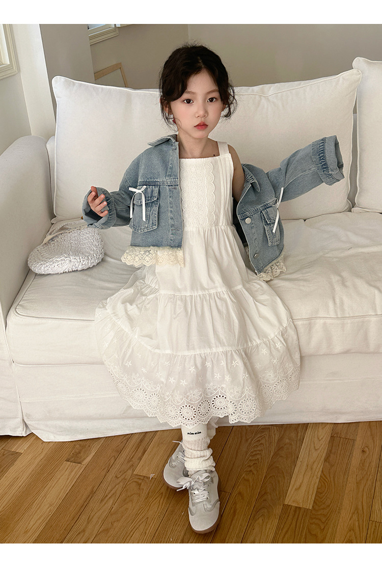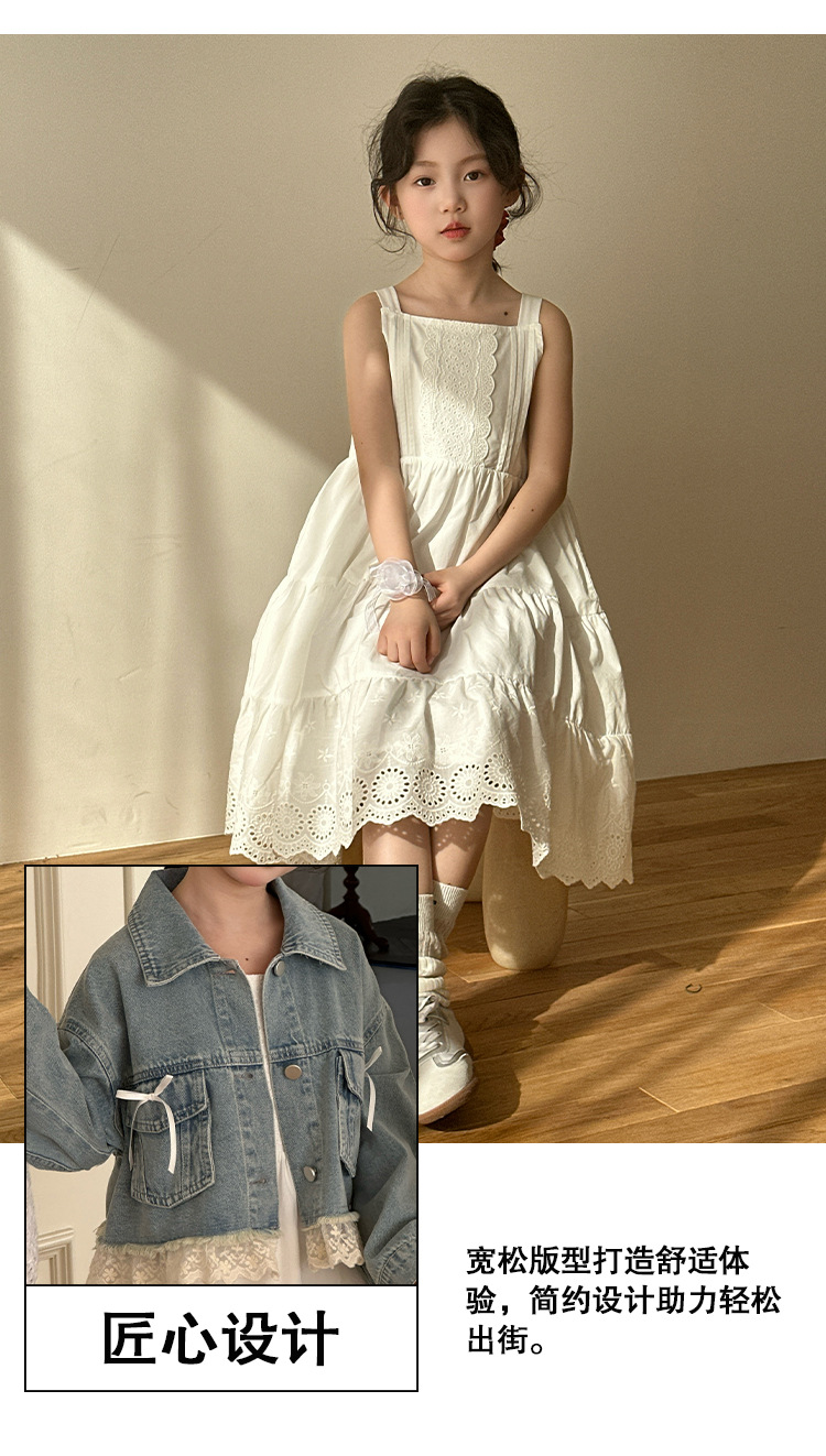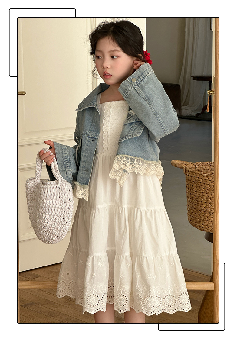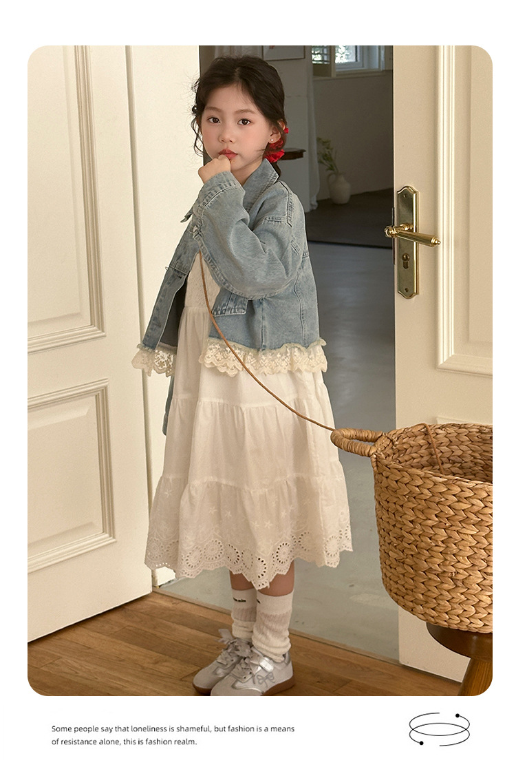소녀의 코트 봄 한국 스타일 느슨한 캐주얼 유행 아동복 서양식 소녀 유행 데님 탑 후주 Zhili
