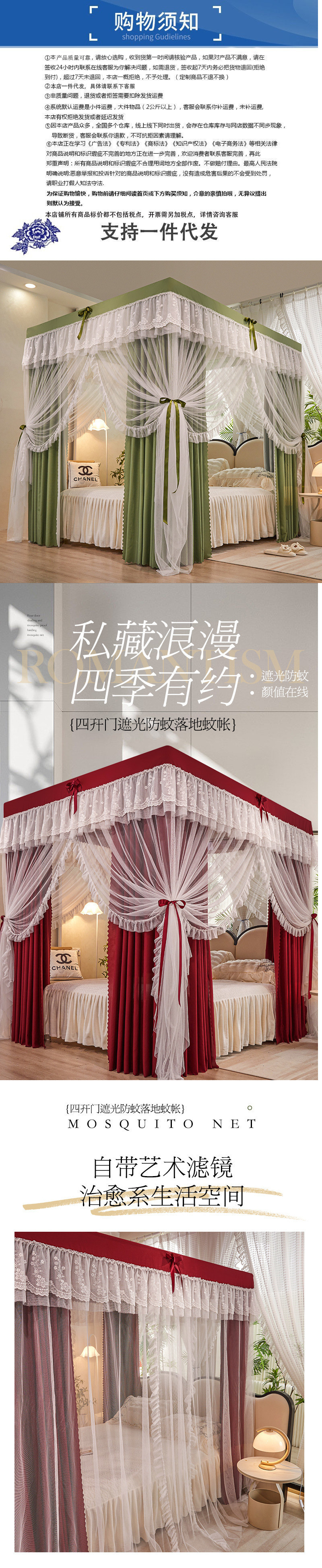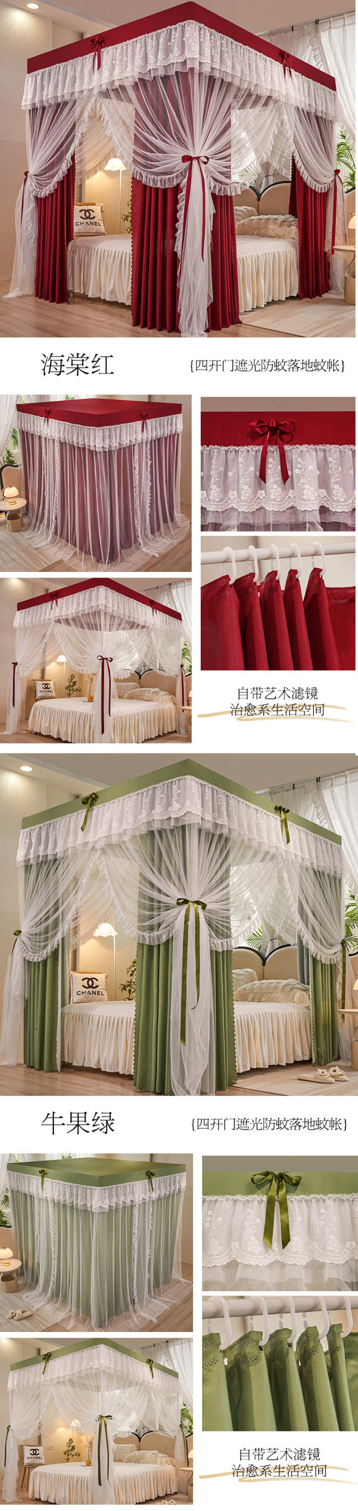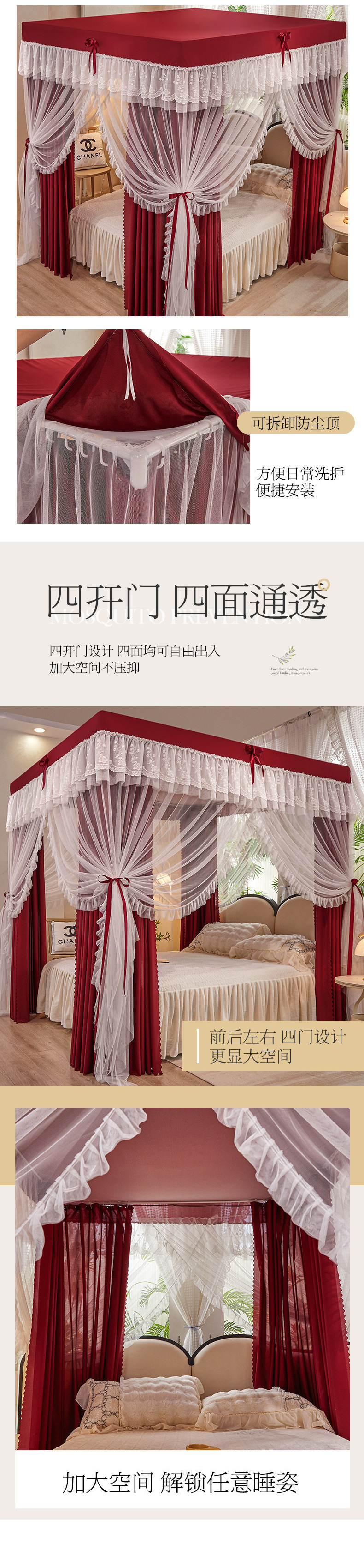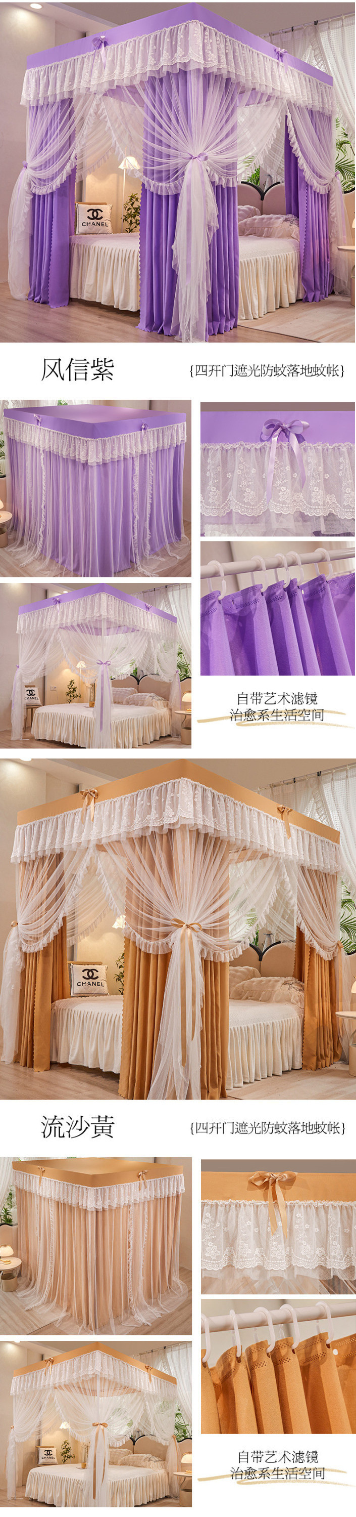 가정용 모기장 침대 커튼 통합 공주 방진 침대 맨틀 암호화 된 두꺼운 궁전 스타일 3 도어 원사스토어 가기