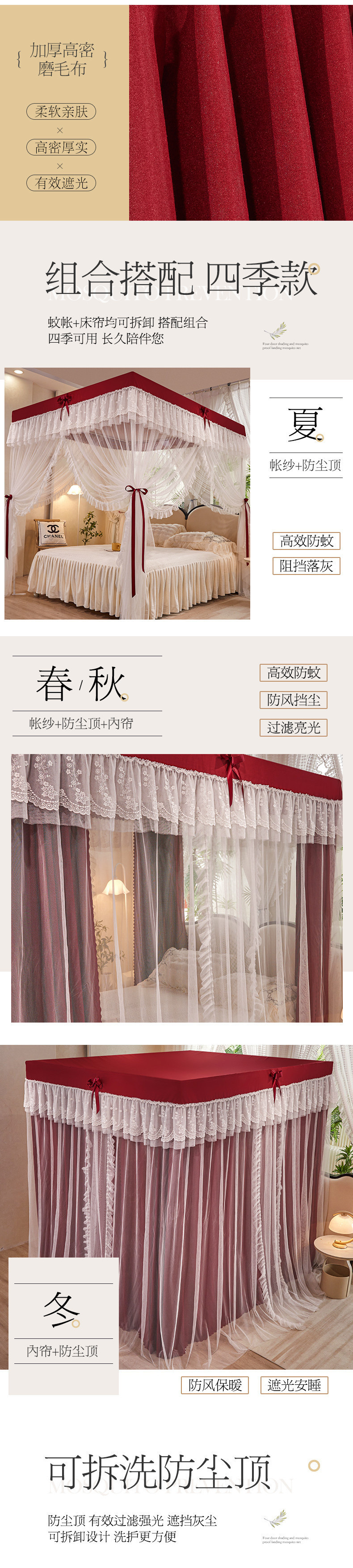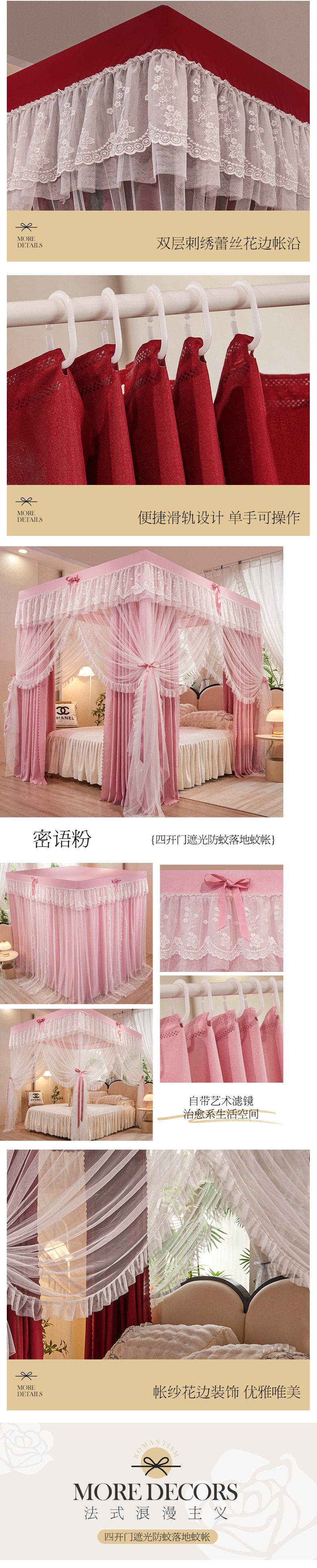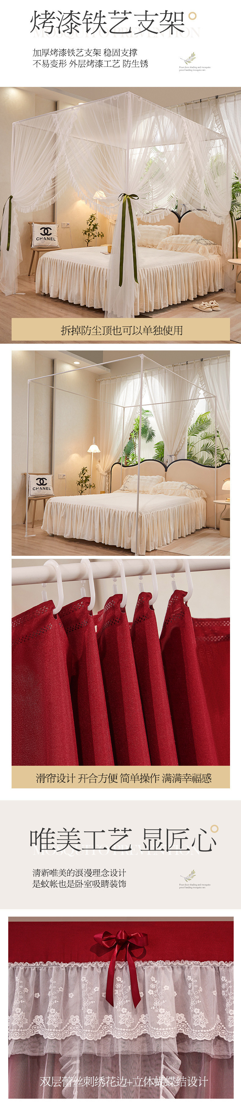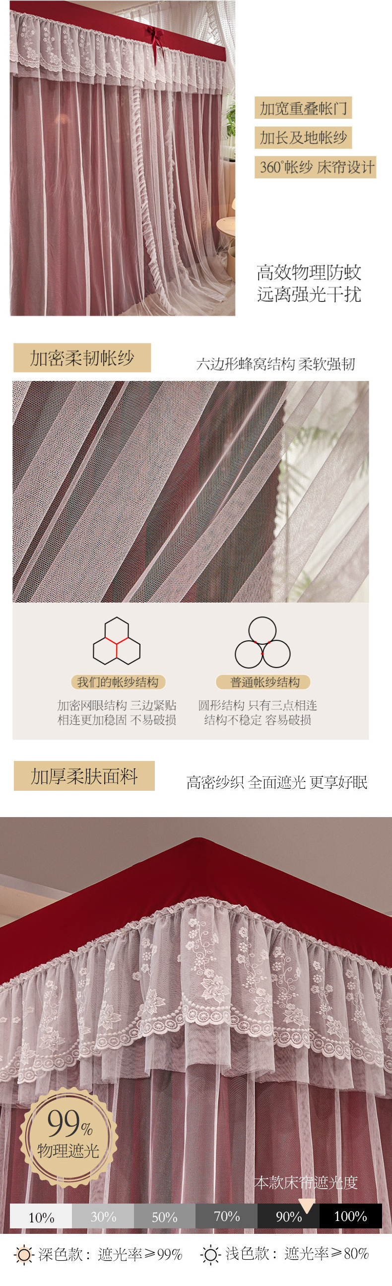 가정용 모기장 침대 커튼 통합 공주 방진 침대 맨틀 암호화 된 두꺼운 궁전 스타일 3 도어 원사스토어 가기