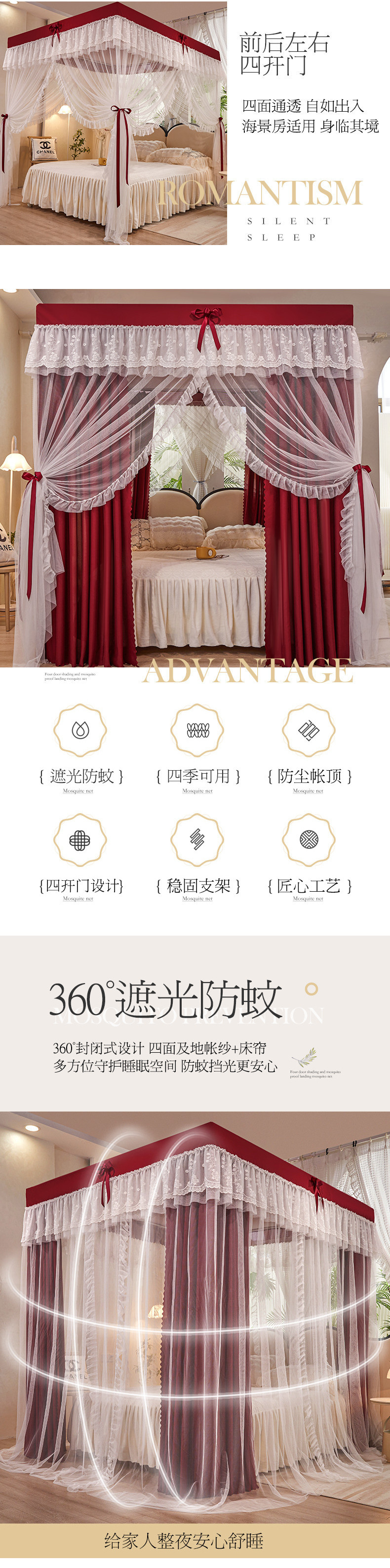 가정용 모기장 침대 커튼 통합 공주 방진 침대 맨틀 암호화 된 두꺼운 궁전 스타일 3 도어 원사