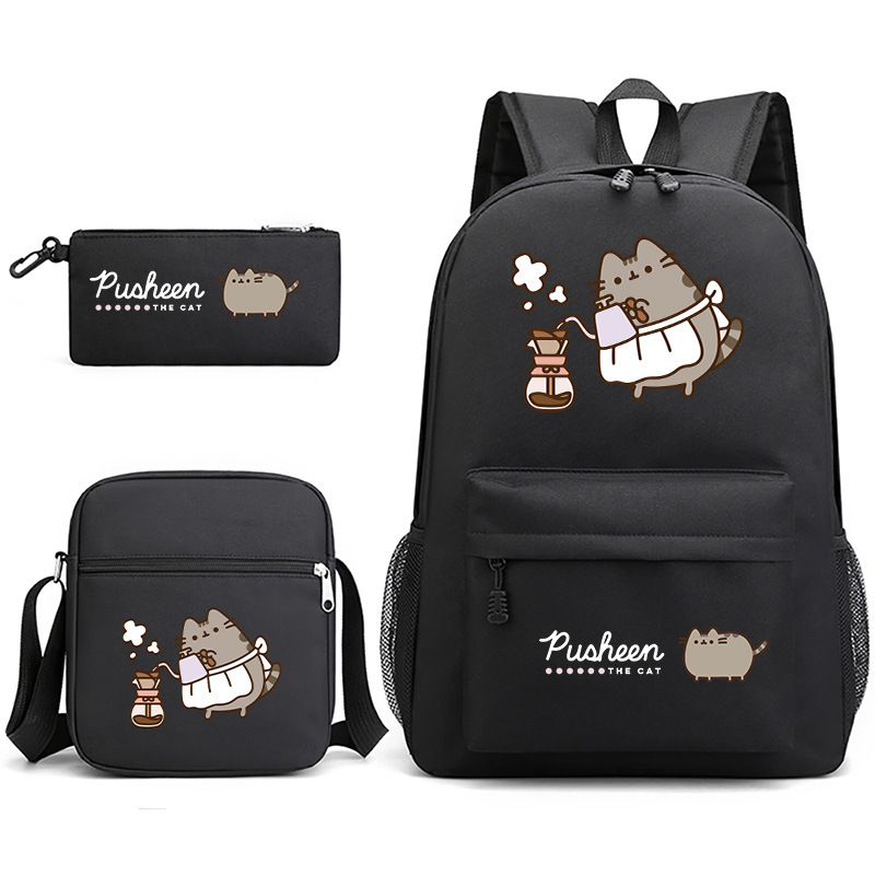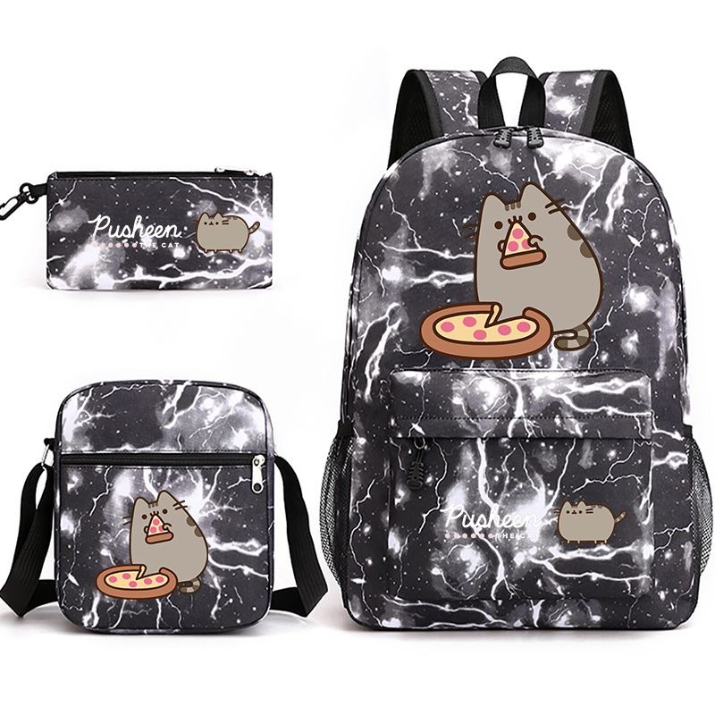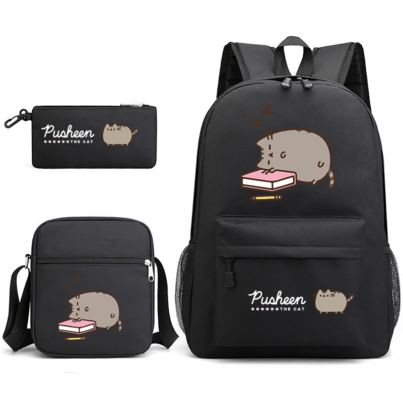 Pusheen Chubby Kitao 3 조각 Schoolbag 캐주얼 남성 및 여성 학생 배낭 인쇄 대용량 야외 배낭스토어 가기