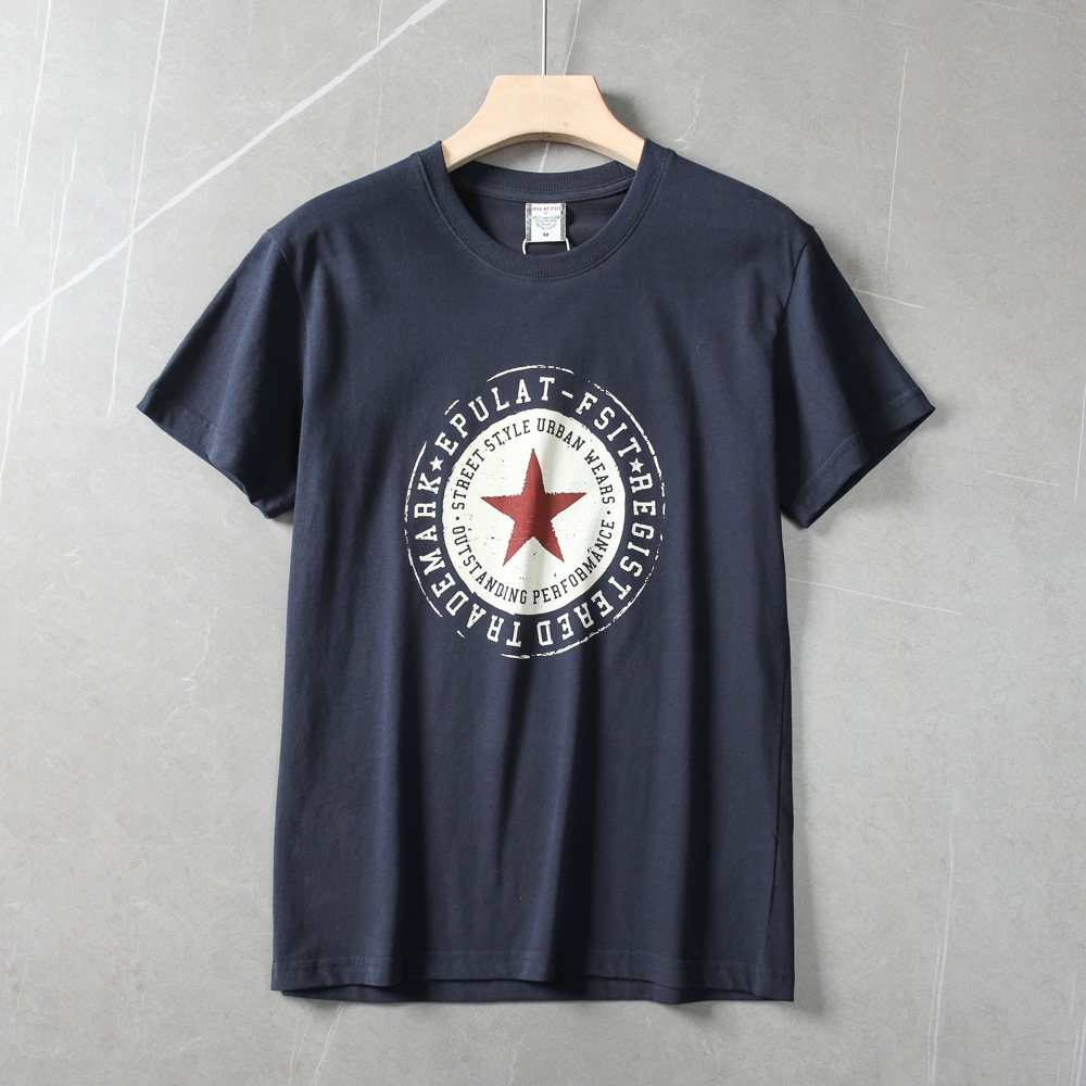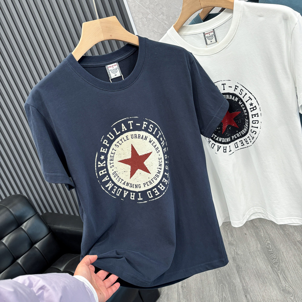 100 면 세척 샌딩 2025 뉴 코튼 반팔 티셔츠 남성용 아메리칸 스타일 레트로 인쇄 반소매 티셔츠