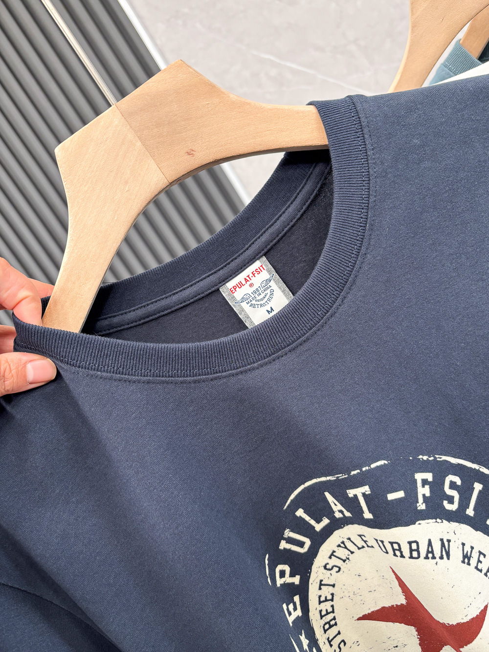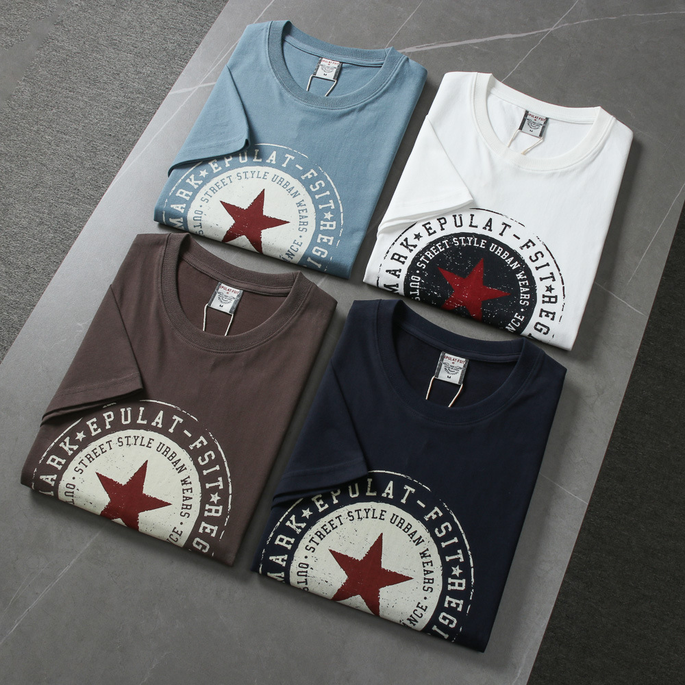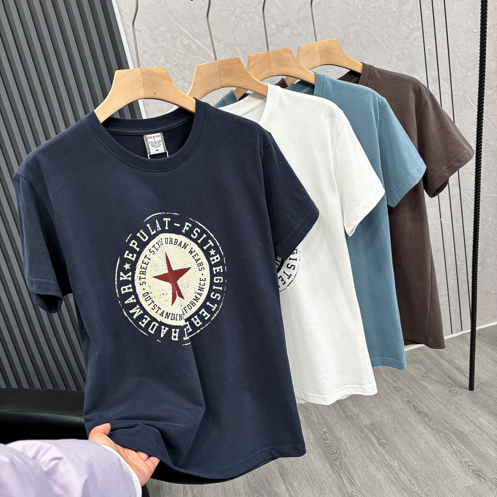 100 면 세척 샌딩 2025 뉴 코튼 반팔 티셔츠 남성용 아메리칸 스타일 레트로 인쇄 반소매 티셔츠스토어 가기