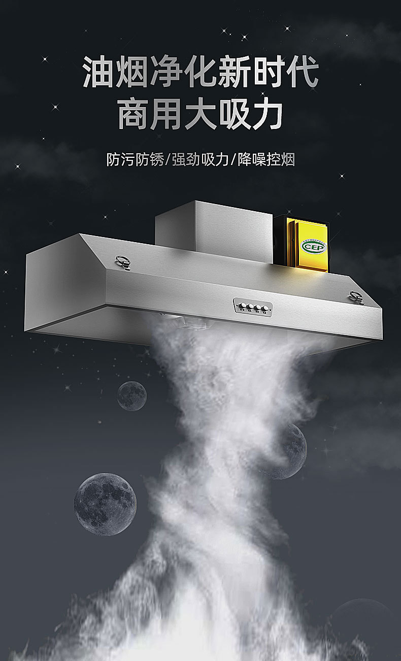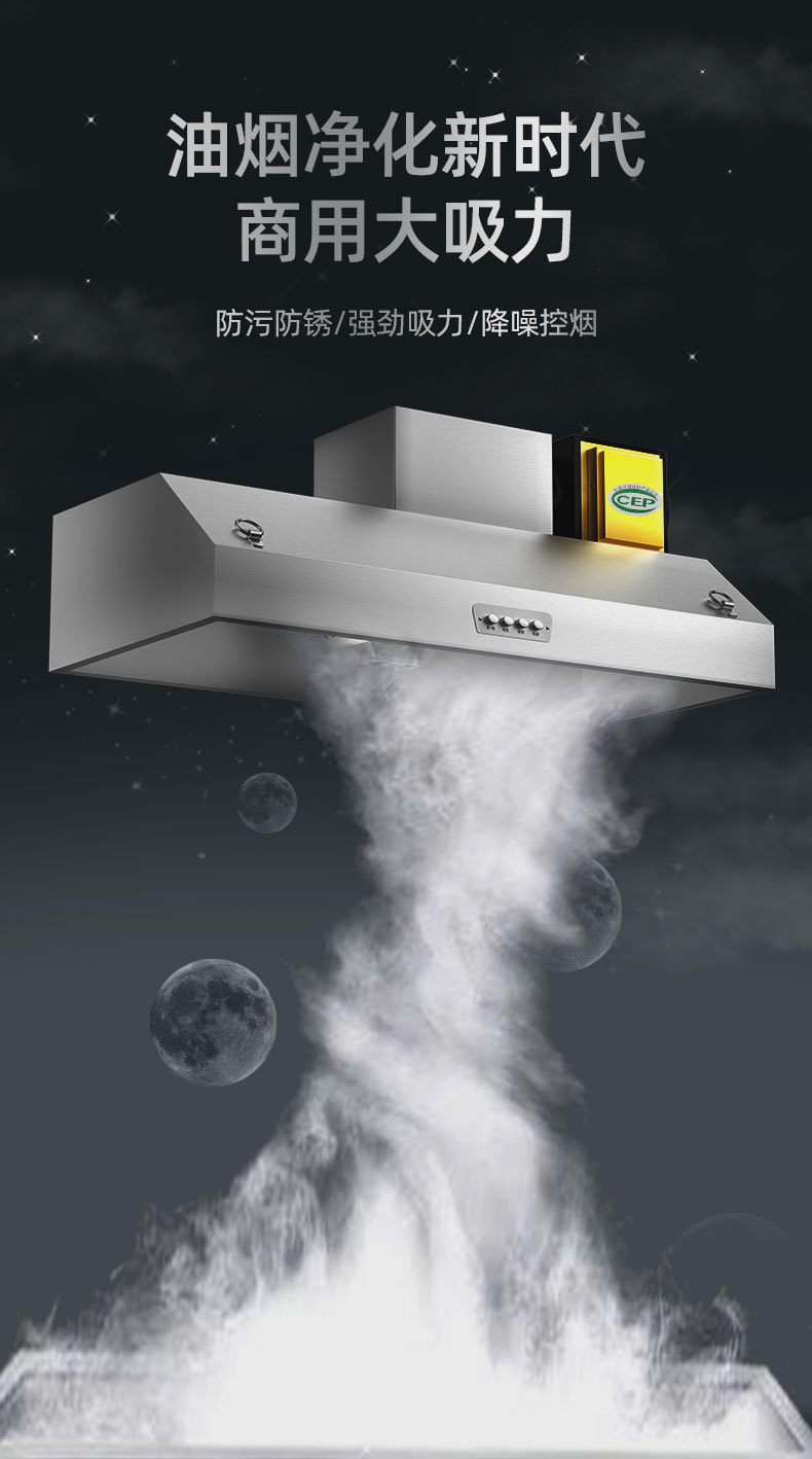 [1500 와트] 상업 범위 후드 청정기 환경 친화적 인 통합 호텔 지구 스토브 스트레이트 행 대형 흡입 연기 배기 후드