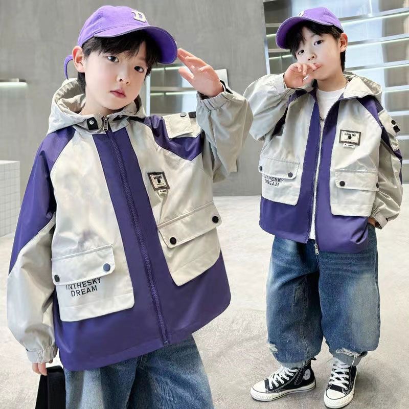 소년 충전 옷 2025 새로운 방풍 방수 재킷 소년 잘 생긴 중형 및 대형 어린이 서양식 어린이 윈드 브레이커 외복스토어 가기