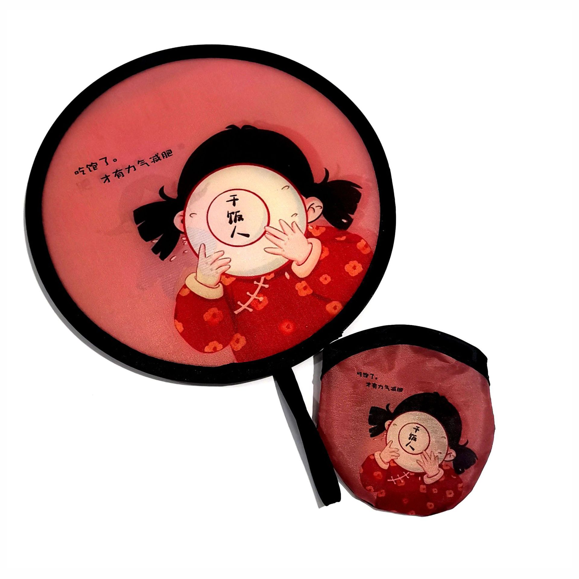 접이식 팬 축소 작은 그룹 팬 학생 휴대용 만화 라운드 트위스트 팬 미니 작은 광고 팬스토어 가기