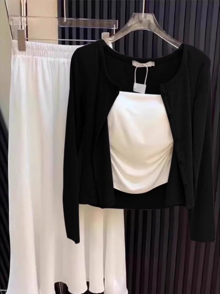 버튼 카디건 여성용 썬 스크린 긴팔 탑 2025 봄 캐주얼 게으른 스타일 간단한 단색 우아한 니트 자켓