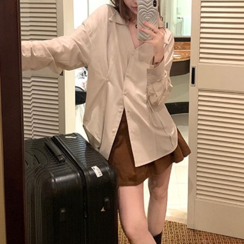 선스크린 셔츠 제어 어두운 질감 센스 허리 셔츠 디자인 센스 틈새 셔츠 여성용 2024 봄과 가을 최고 패션스토어 가기