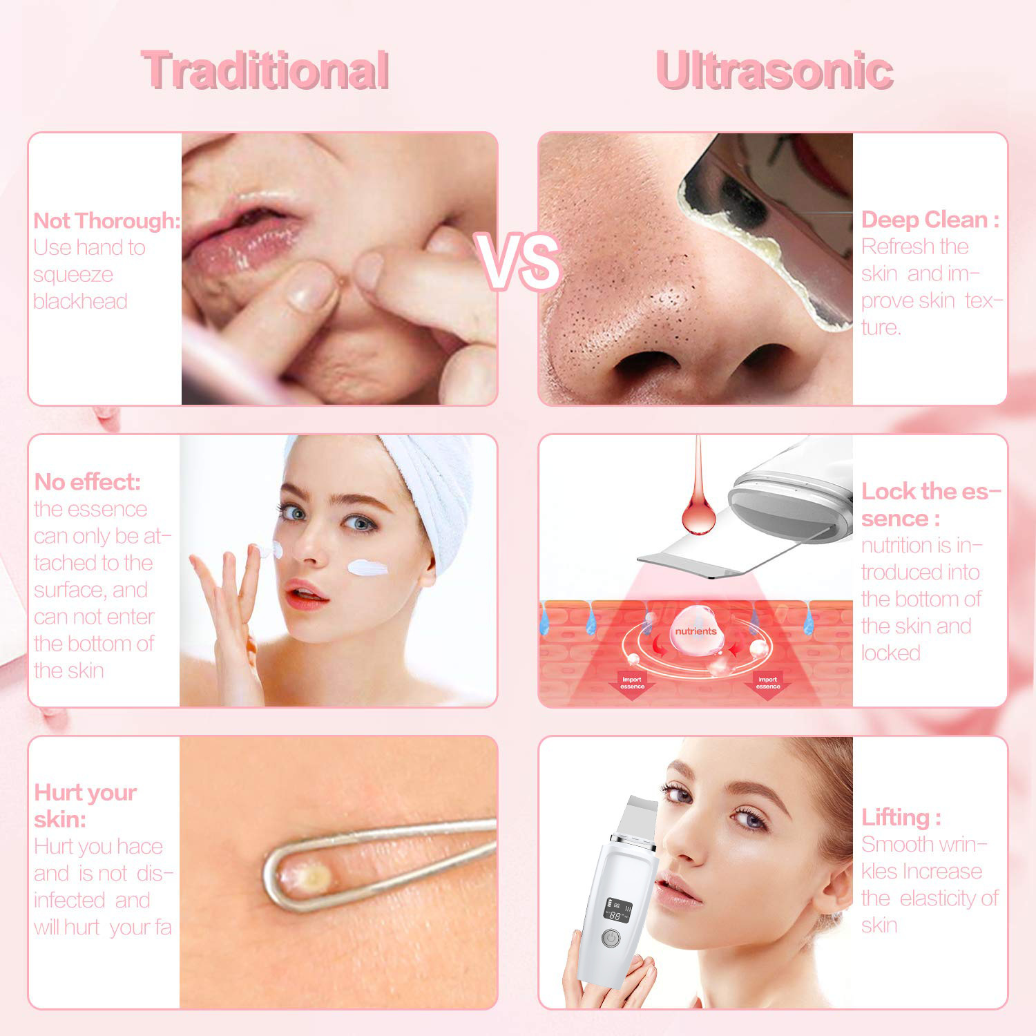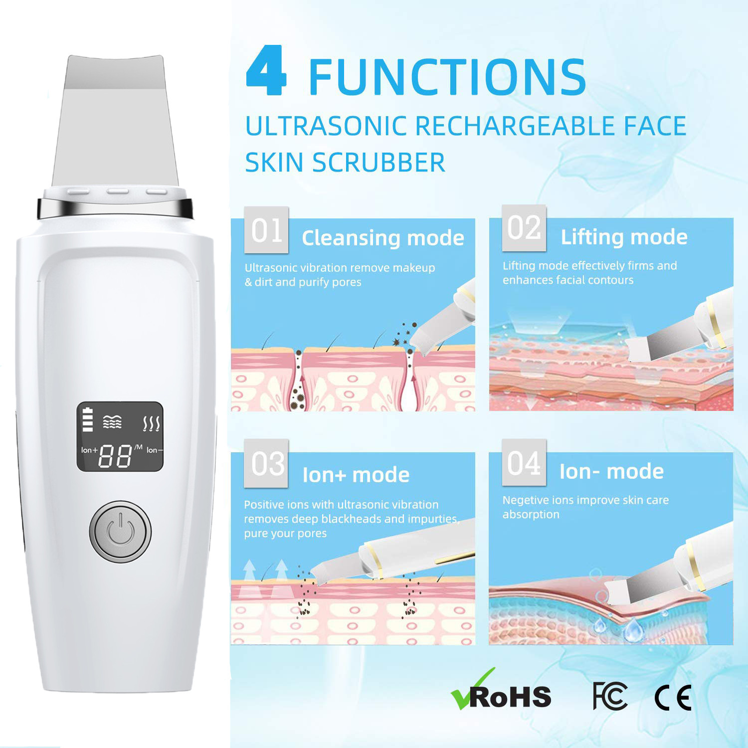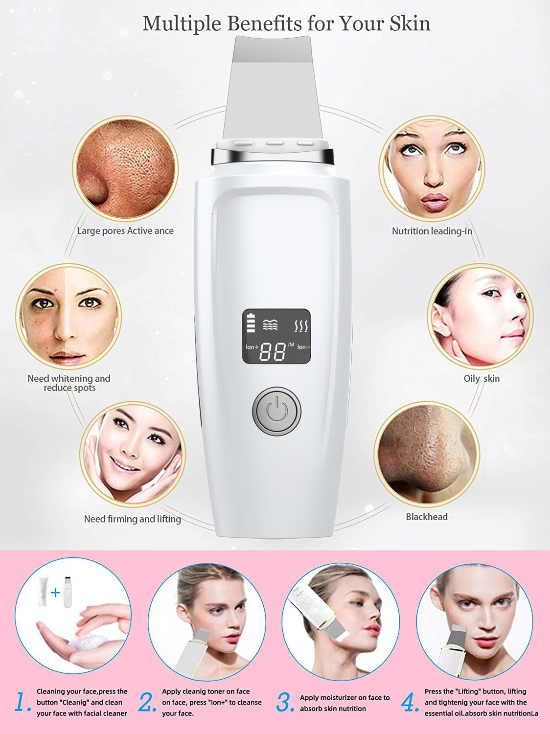 LCD 스크린 스킨 스크레이퍼 지원 1 세대 헤어 블랙 헤드 제거 기구 기공 청소 및 간호 얼굴 클렌저