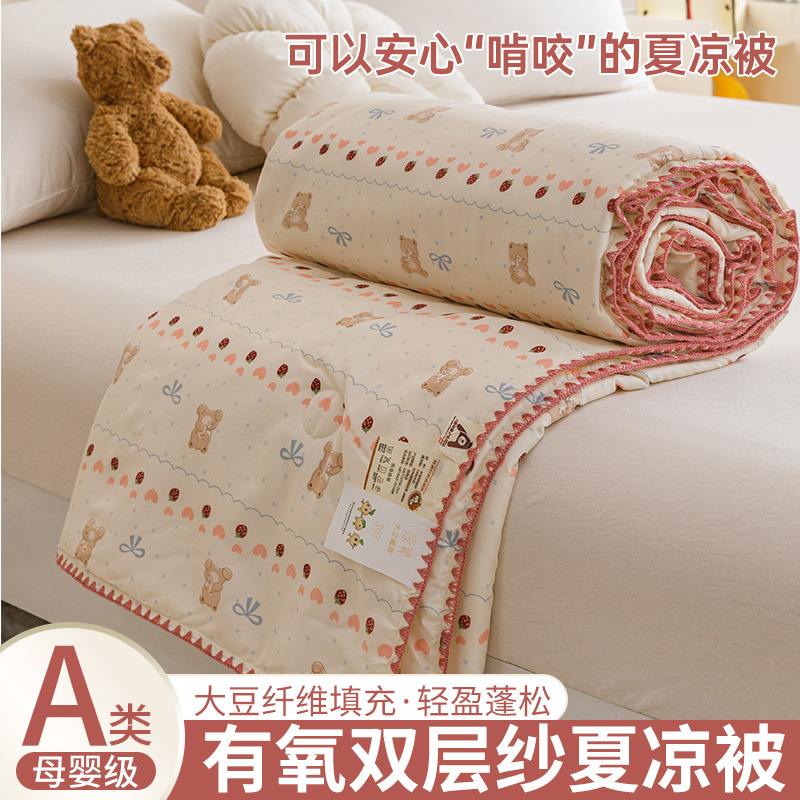 클래스 콩 섬유 니트 코튼 여름 이불 더블 레이어 원사 여름 시원한 이불 기계 세탁기 어린이 쿨 이불 에어컨 이불스토어 가기