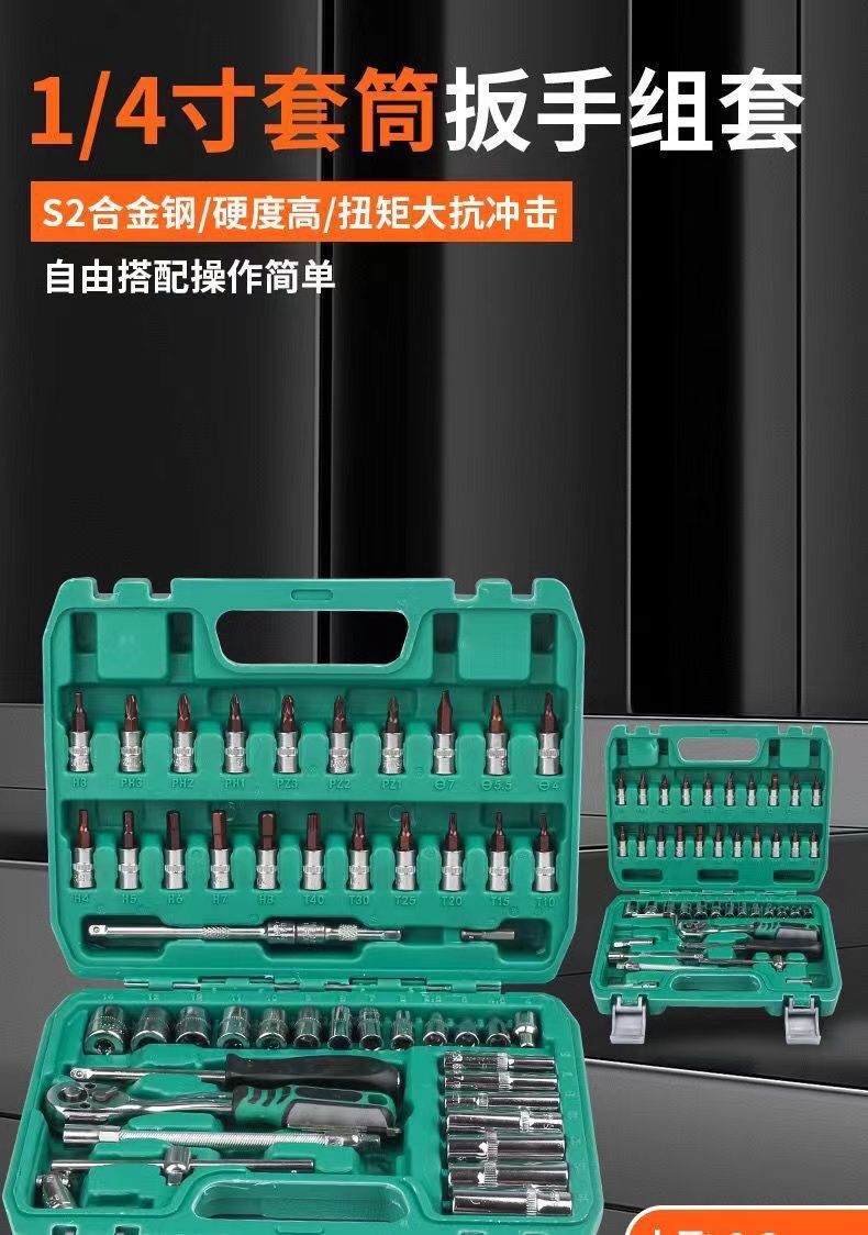 • 전문 자동차 수리 53점 세트 [녹색 상자 72치 곡선 핸들 S2 비트]