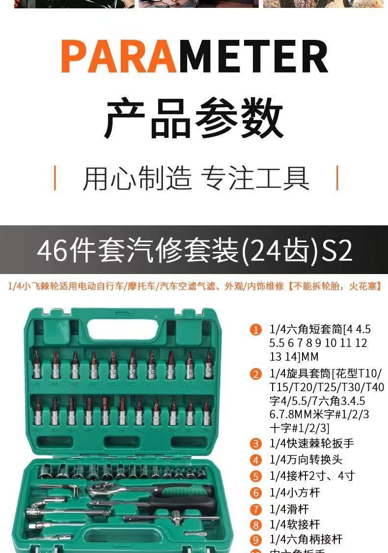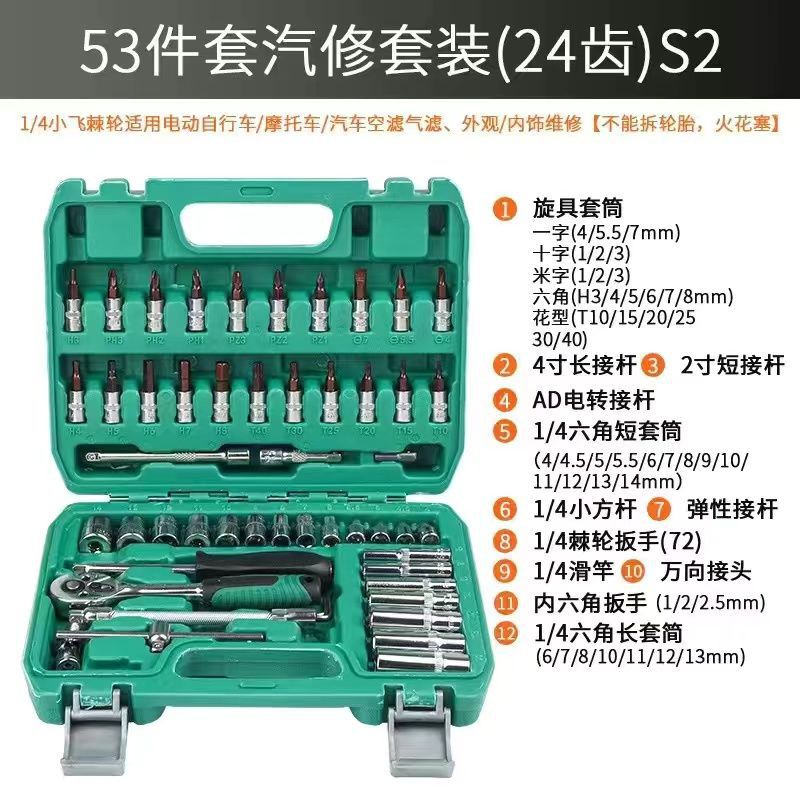 • 전문 자동차 수리 53점 세트 [녹색 상자 24톱니 직선 핸들 S2 비트]