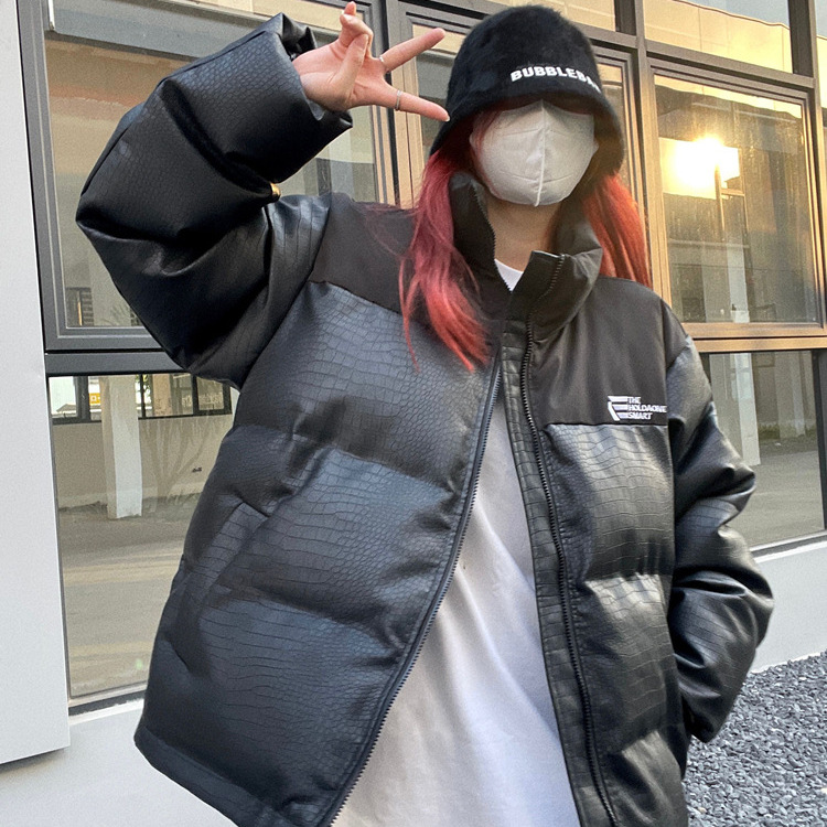 소스 공장 겨울 새로운 하이 스트리트 빵면 패딩 재킷 조수 브랜드 따뜻한 커플 코트 느슨한 두꺼운 인쇄 된면 패딩 코트