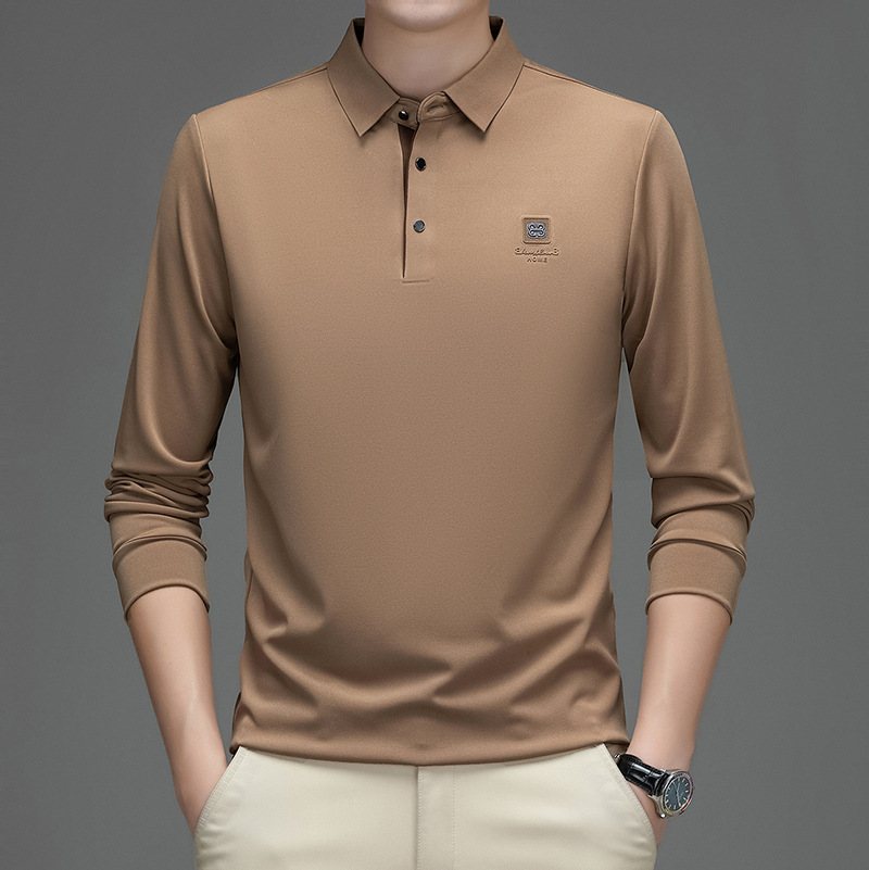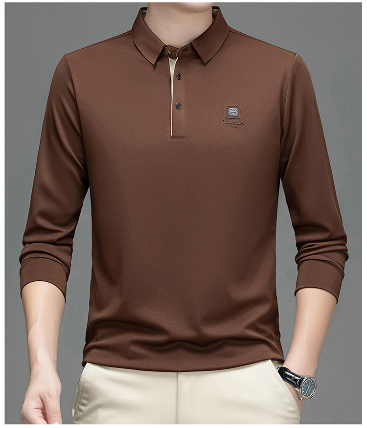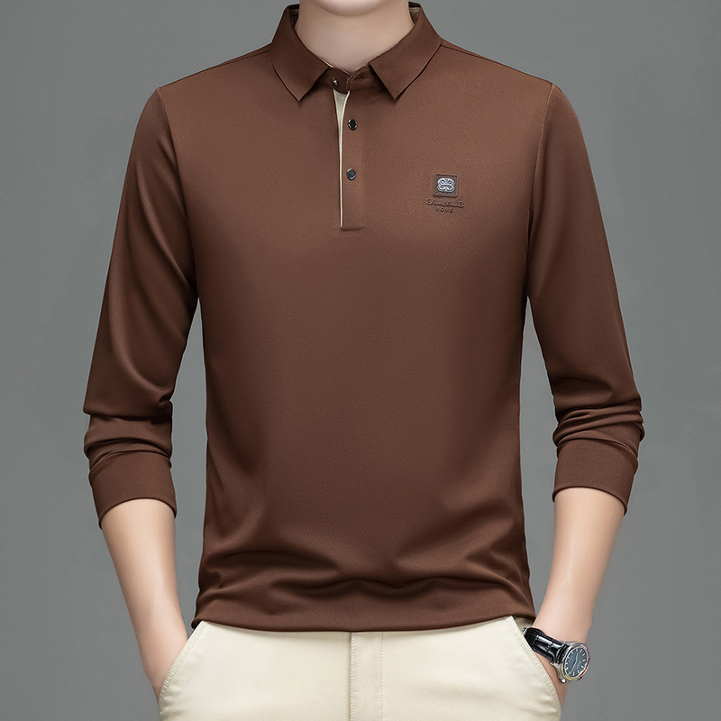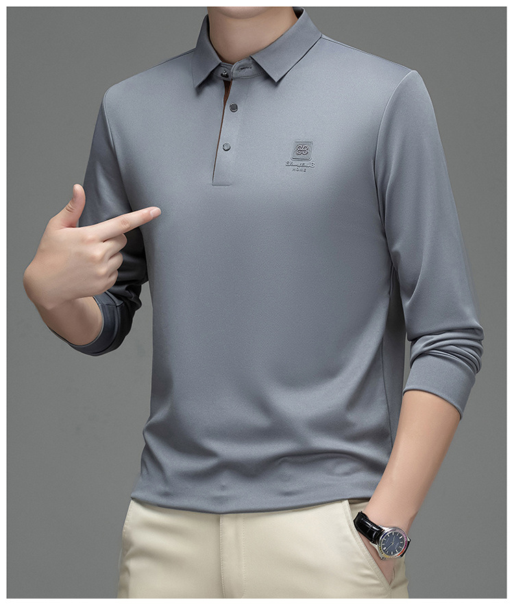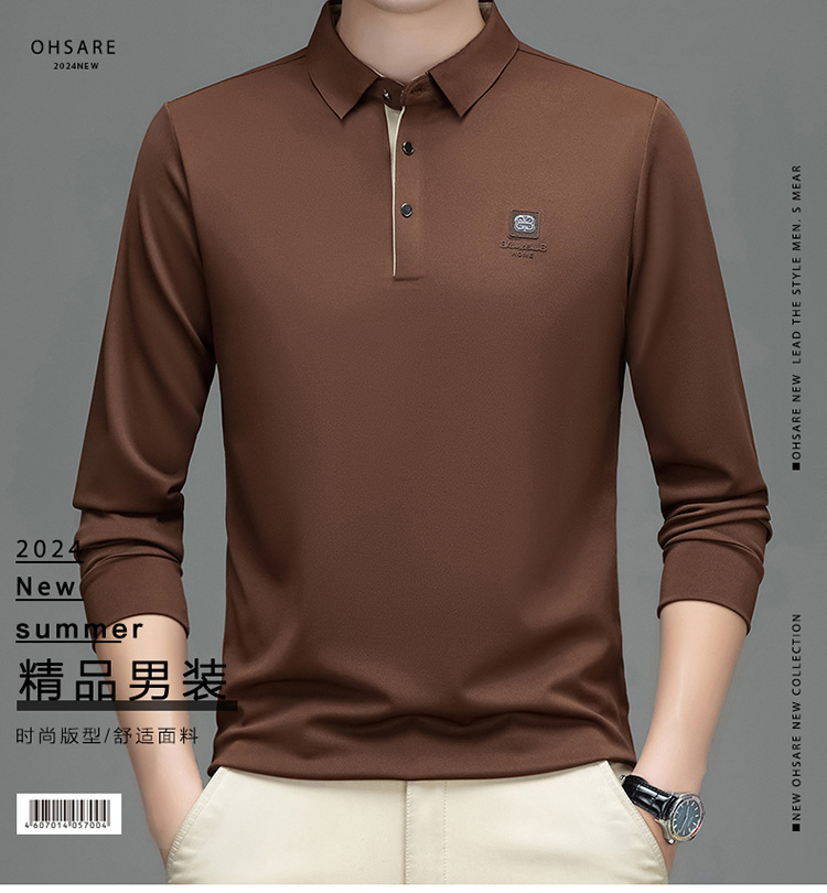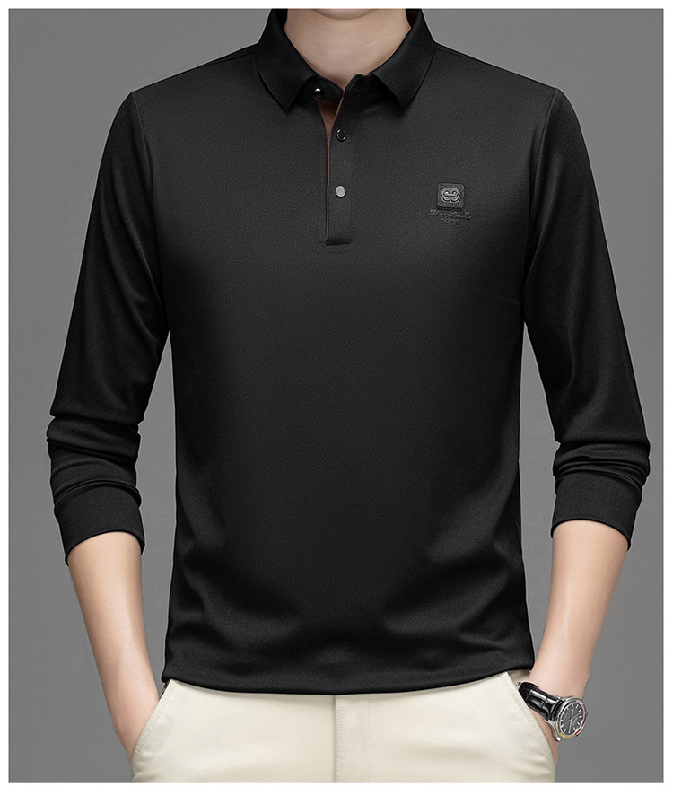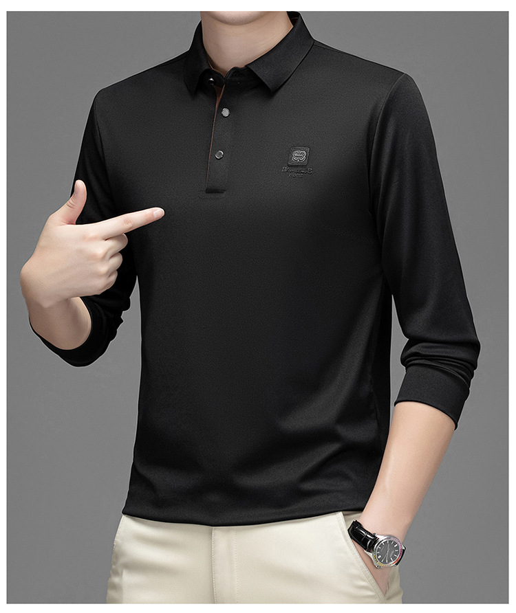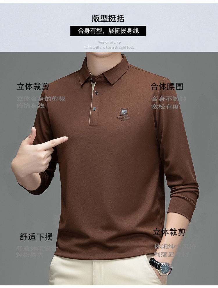 라이브 방송 같은 스타일 남성 긴 소매 폴로 셔츠 중년 비즈니스 캐주얼 탑 가슴 라벨 봄과 가을 새로운 랩 칼라 티셔츠