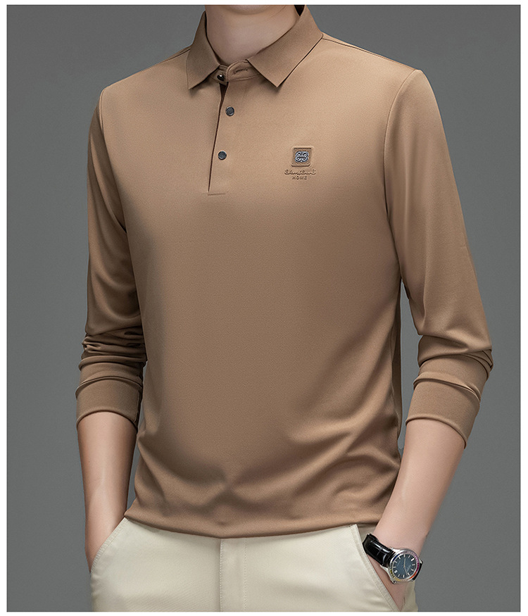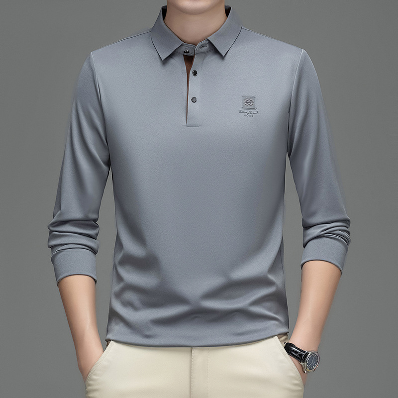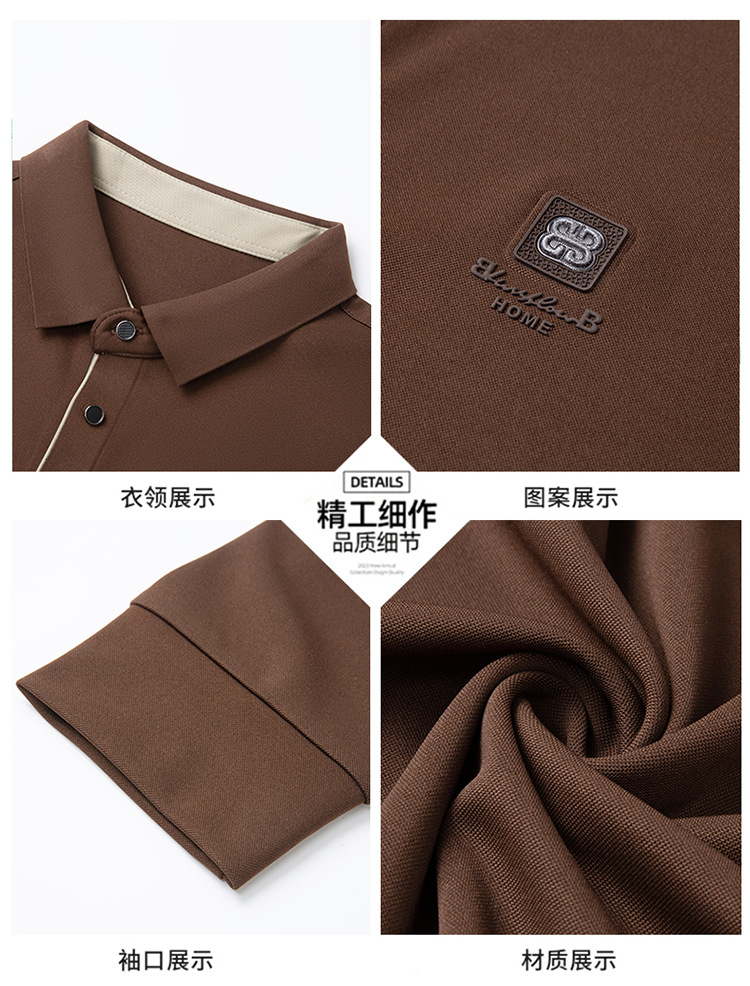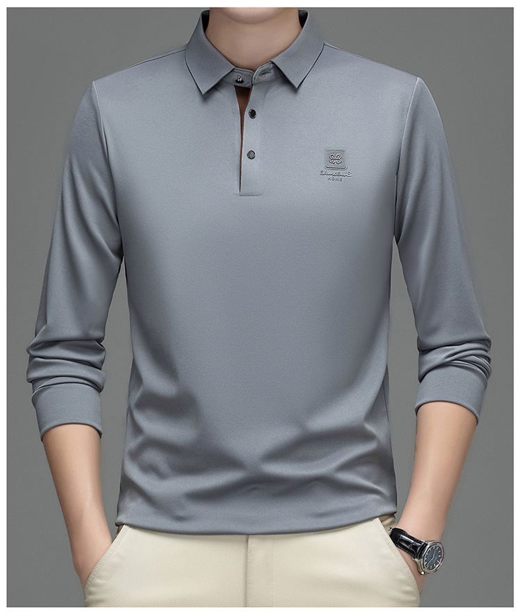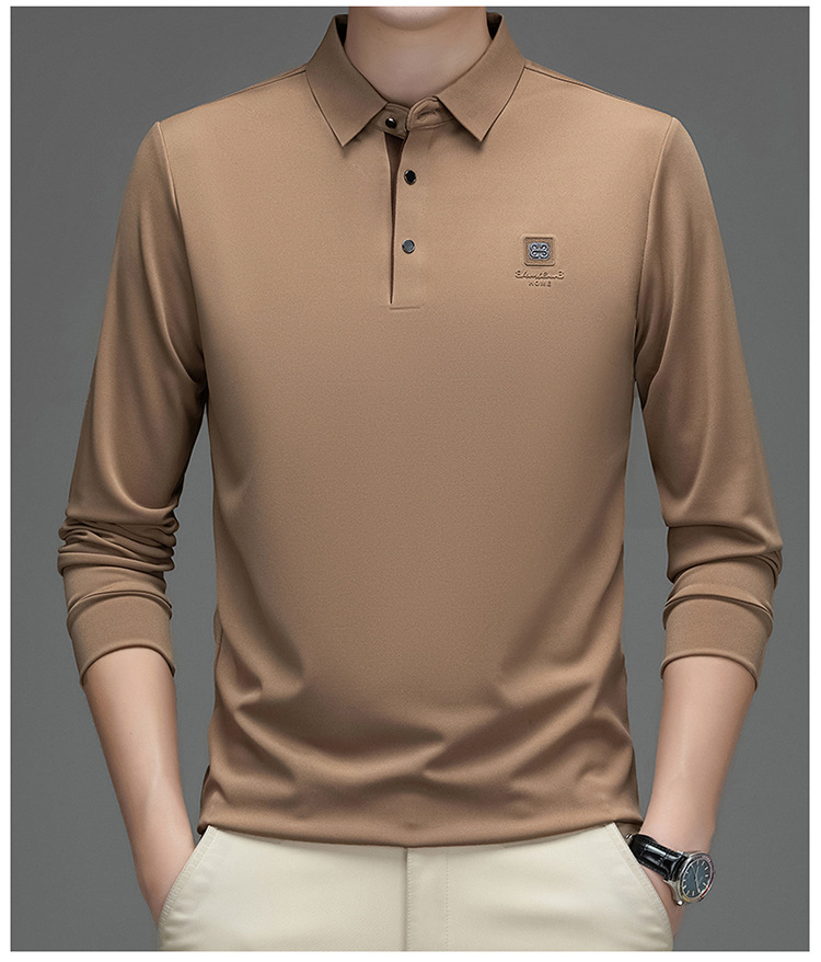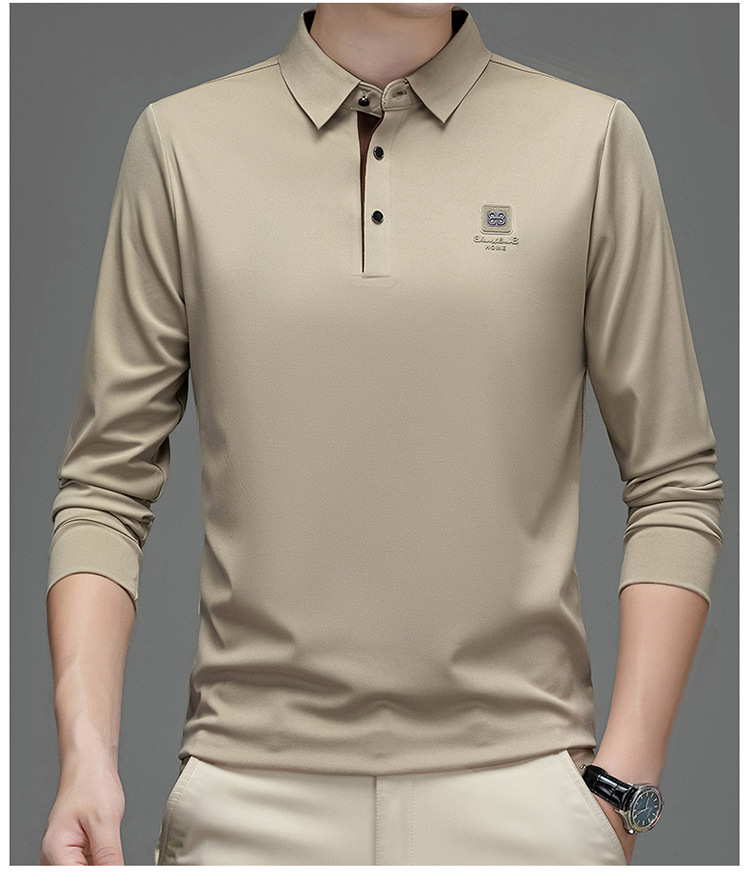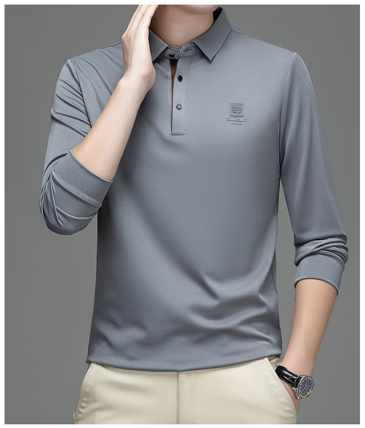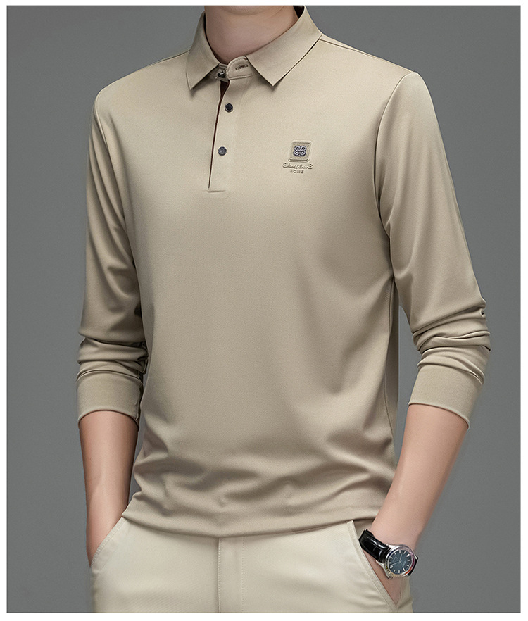 라이브 방송 같은 스타일 남성 긴 소매 폴로 셔츠 중년 비즈니스 캐주얼 탑 가슴 라벨 봄과 가을 새로운 랩 칼라 티셔츠