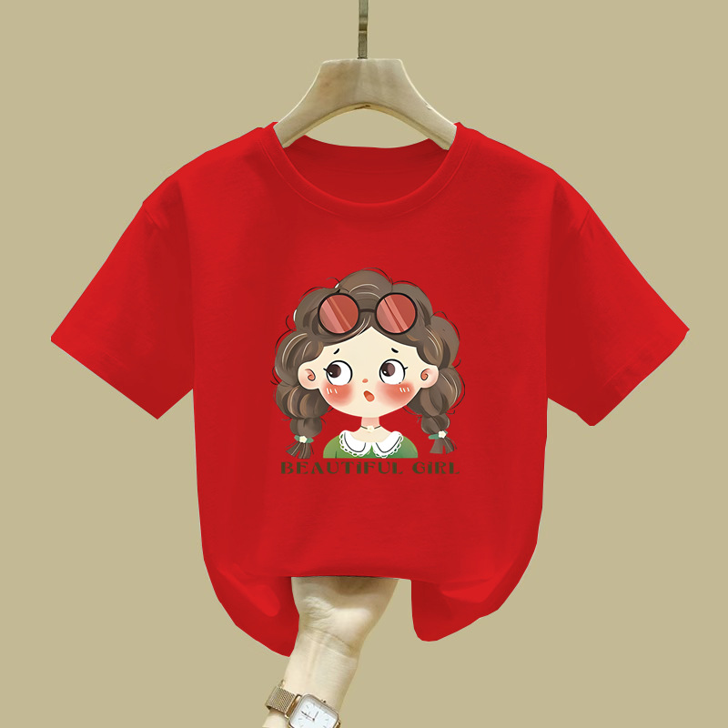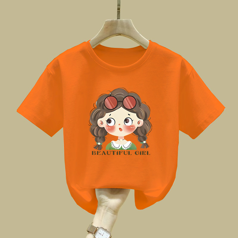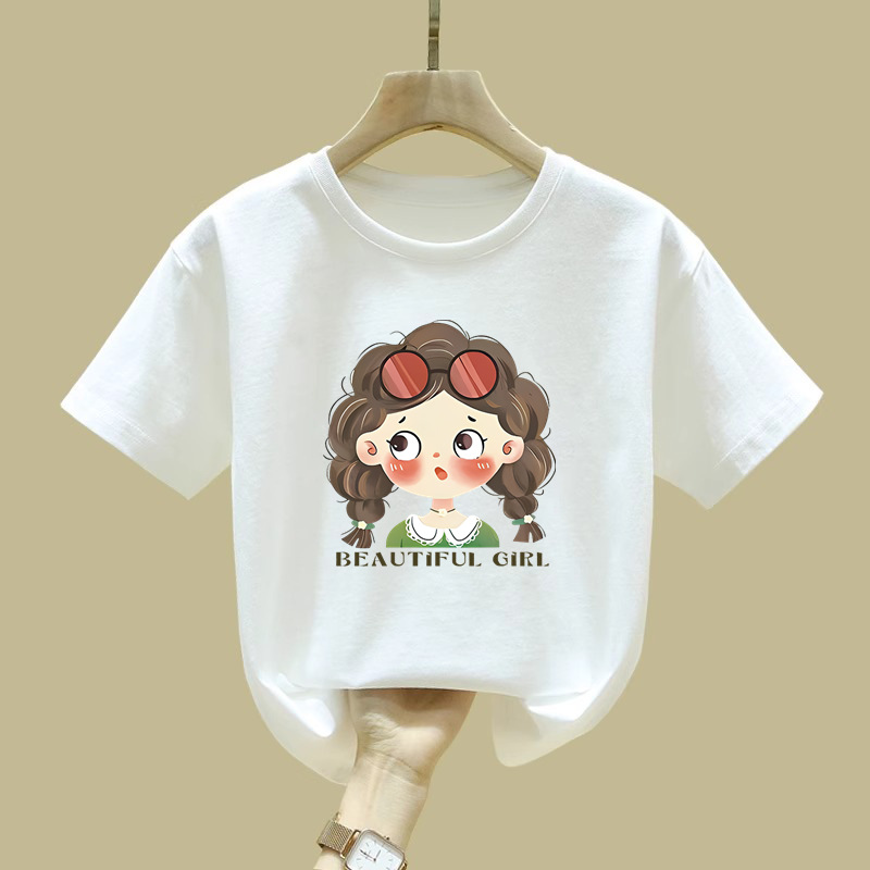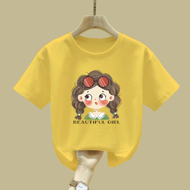 2529 #100% 코튼 걸스 반팔 티셔츠 학생 신상 어린이 최고 올매치 아기 소녀의 여름 흡입 스웨트 셔츠스토어 가기