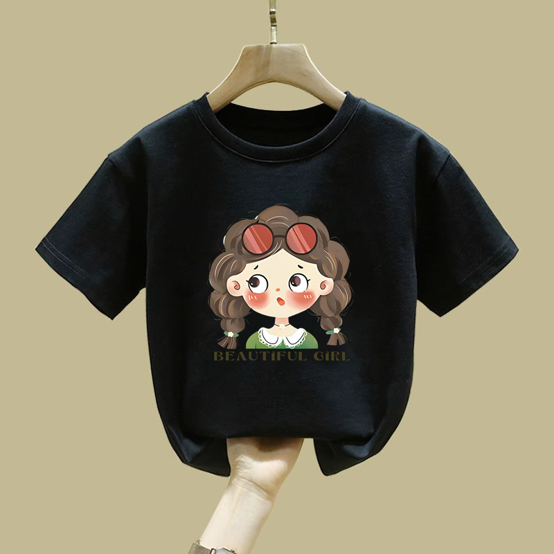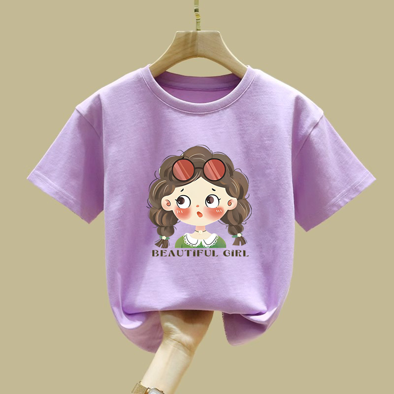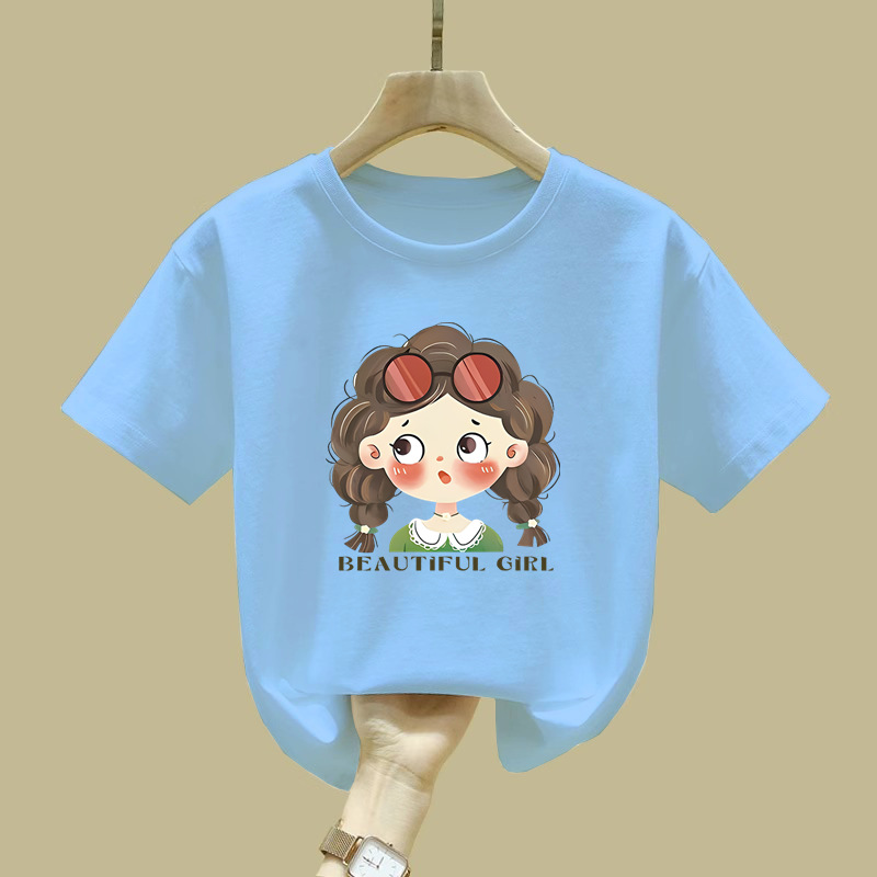 2529 #100% 코튼 걸스 반팔 티셔츠 학생 신상 어린이 최고 올매치 아기 소녀의 여름 흡입 스웨트 셔츠