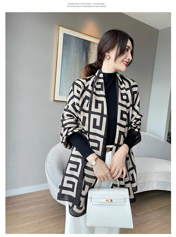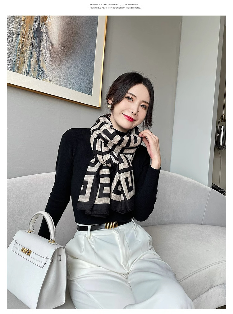 큰 브랜드 우아한 스카프 여성의 봄과 가을 새로운 이중 사용 목도리 가을과 겨울 따뜻한 면과 리넨 실크 스카프 패션 궁전 격자 알파벳