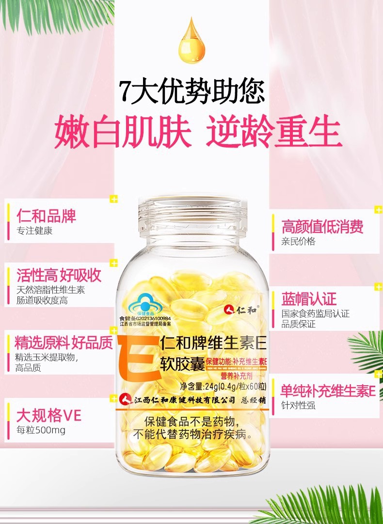 얀 쑤언 렌. 그리고 비타민 E 소프트 캡슐 천연 비타민 E 외부 응용 프로그램 내부 사용 얼굴 얼굴 흰색 정품스토어 가기
