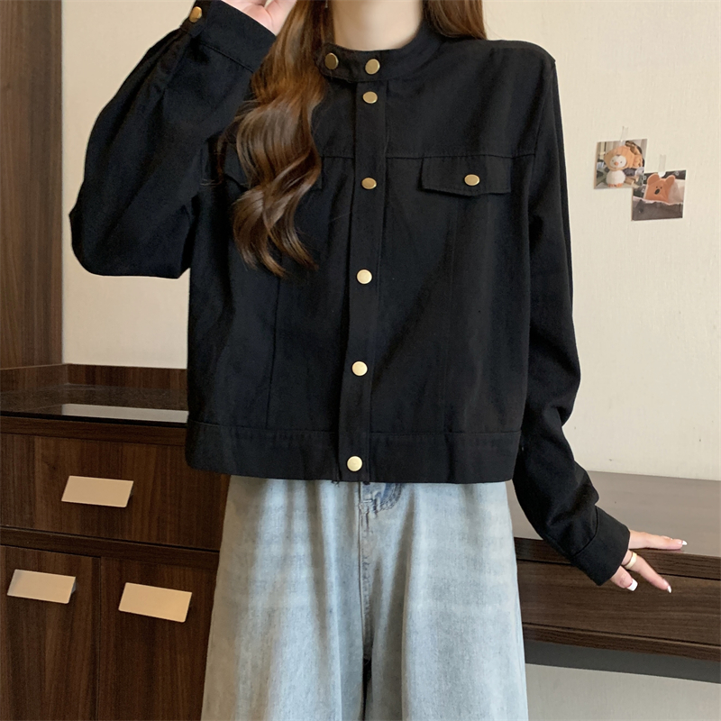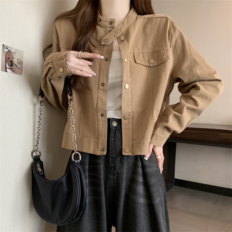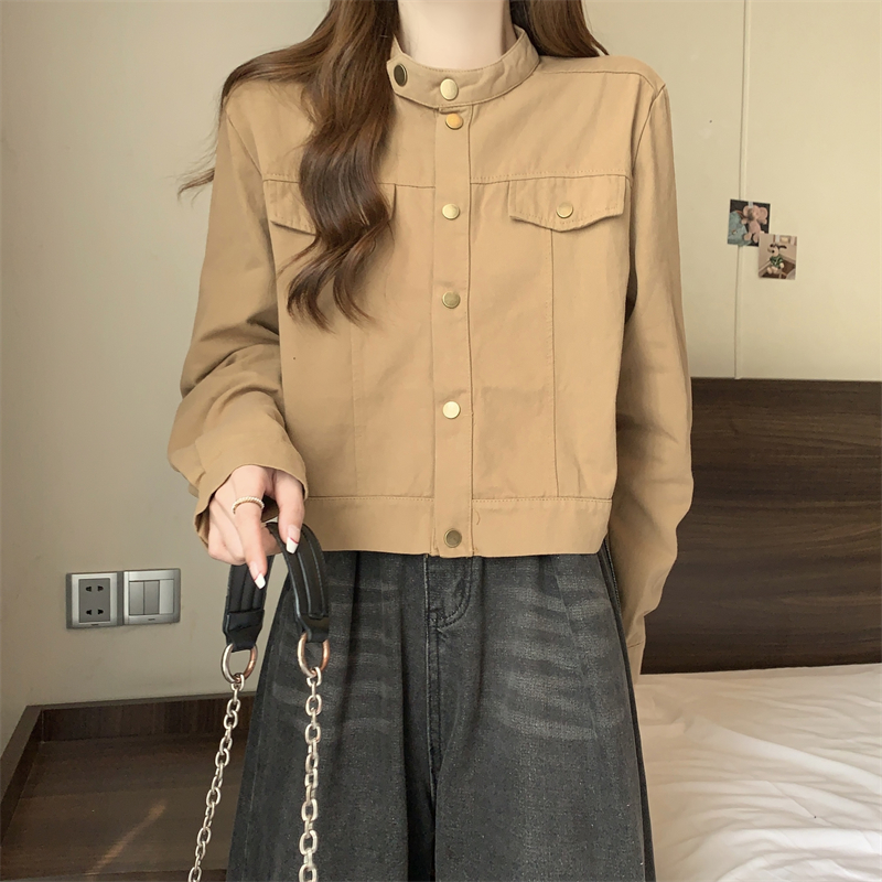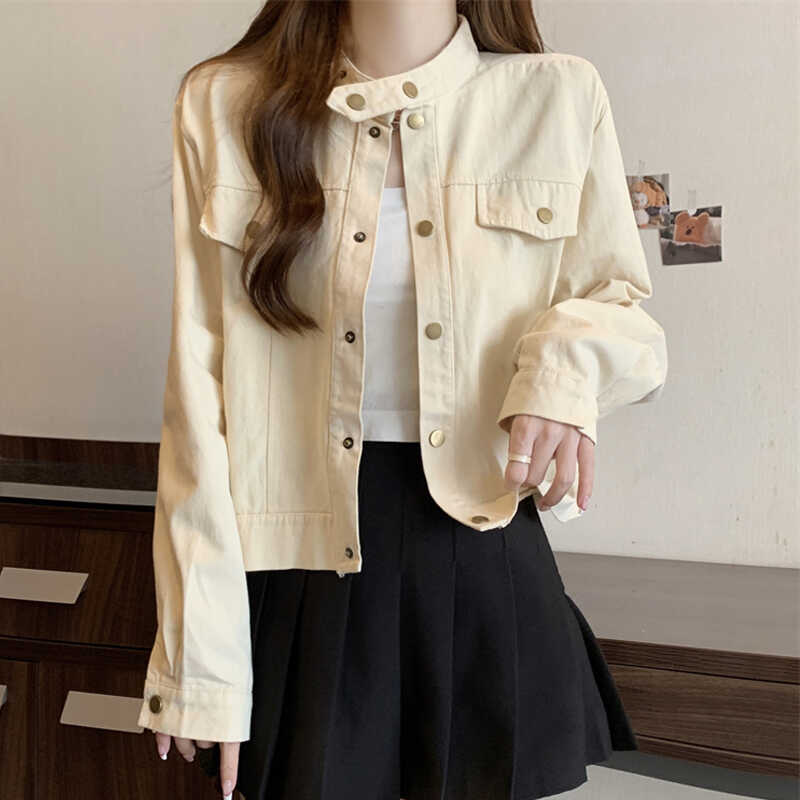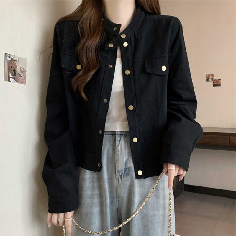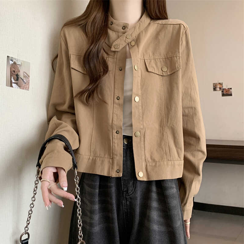 긴 소매 재킷 여자 봄 2025 새로운 미국 스타일 레트로 느슨한 슬리밍 올 매치 칼라 짧은 재킷 탑스토어 가기