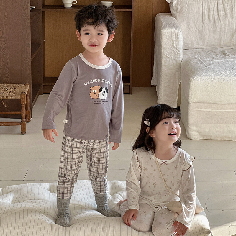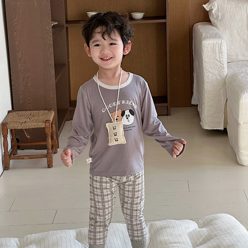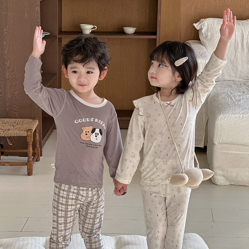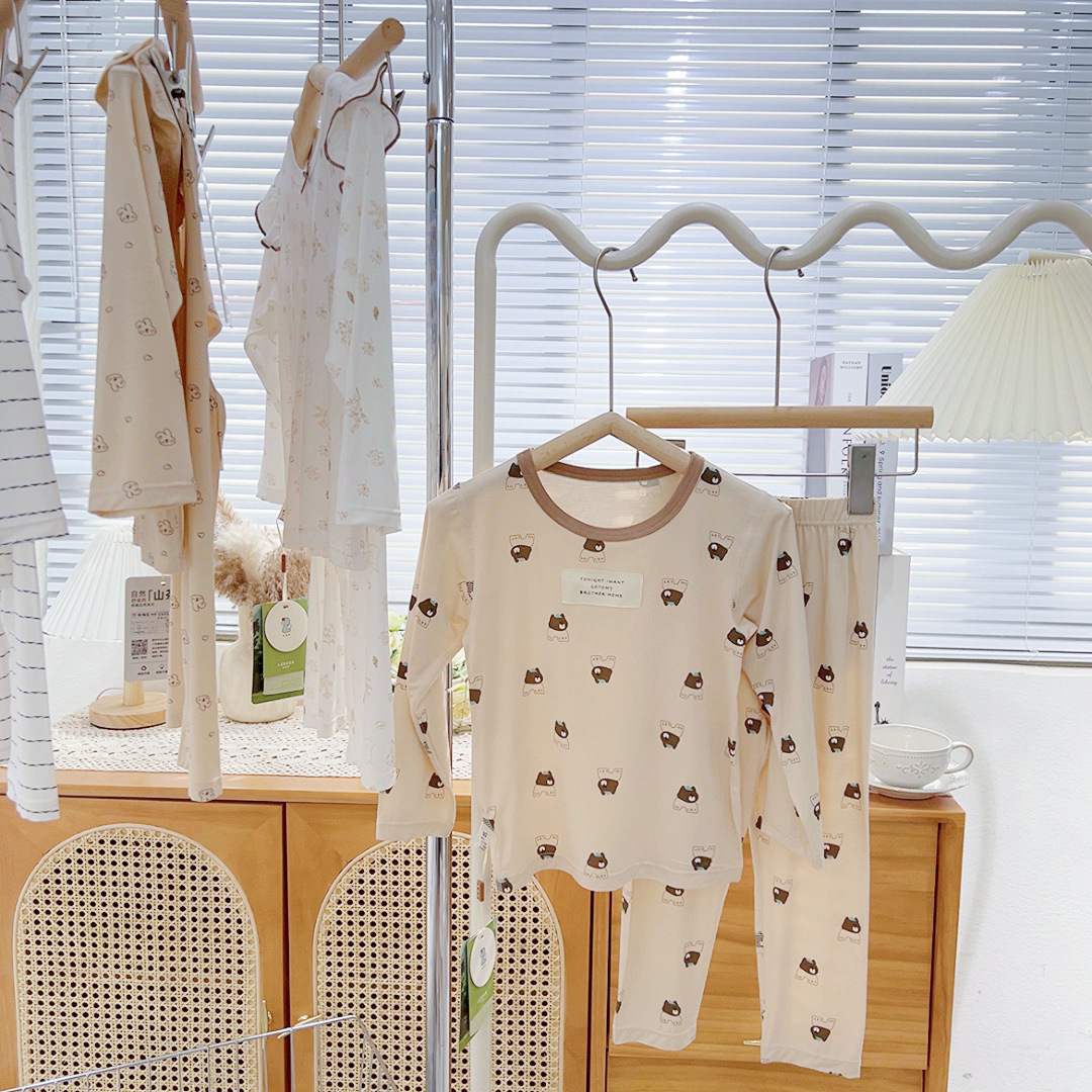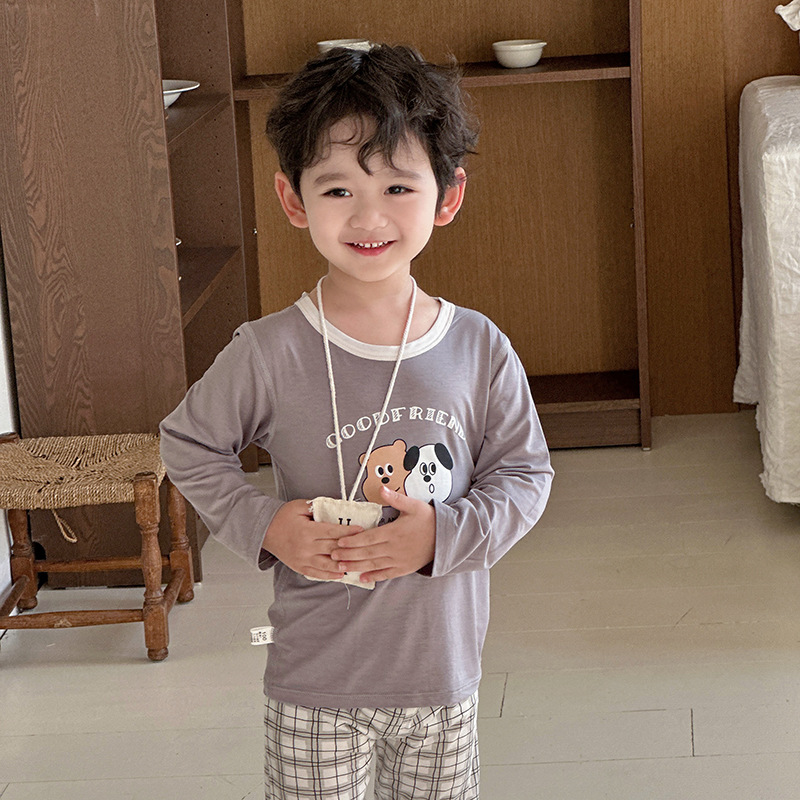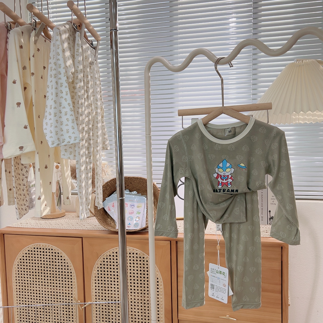 그린 보어 도매 재고 클래스 만화 긴 소매 25 년 새로운 부드러운 슈퍼 탄성 시원한 피부 친화적 인 어린이 홈 의류
