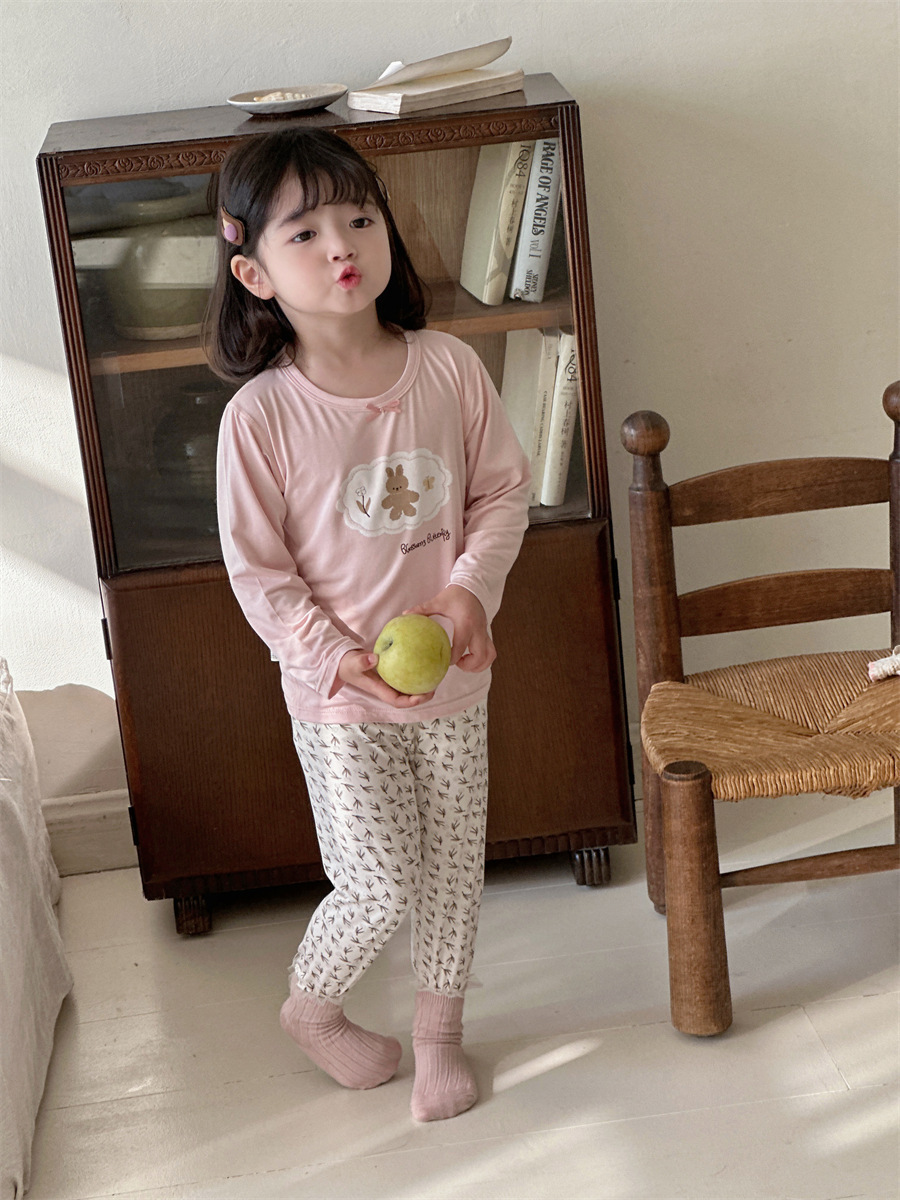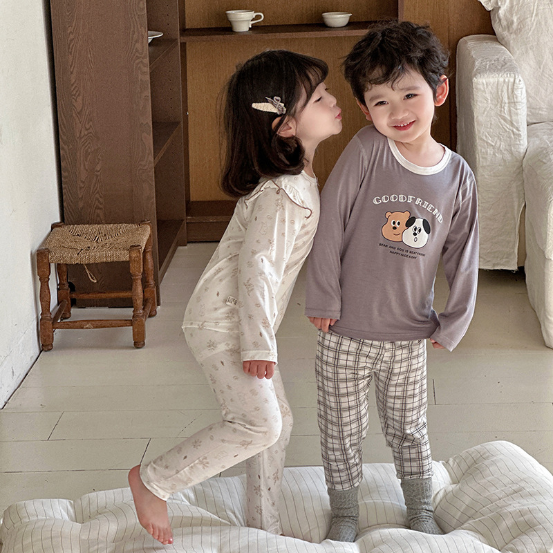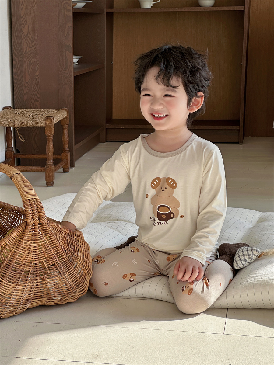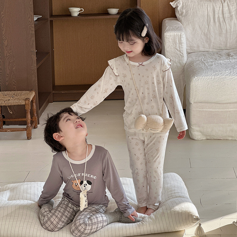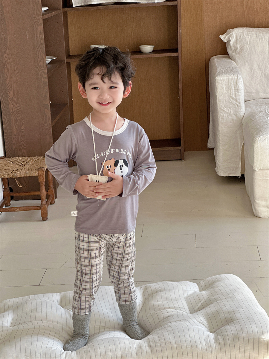 그린 보어 도매 재고 클래스 만화 긴 소매 25 년 새로운 부드러운 슈퍼 탄성 시원한 피부 친화적 인 어린이 홈 의류