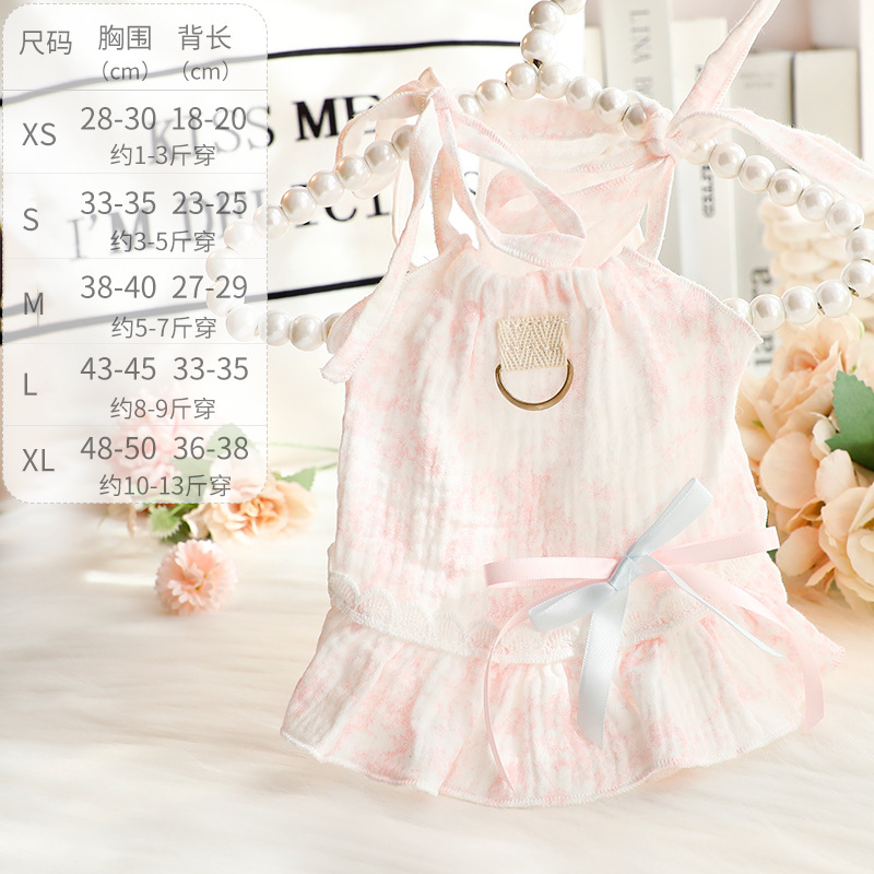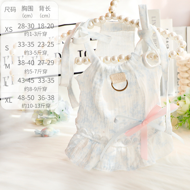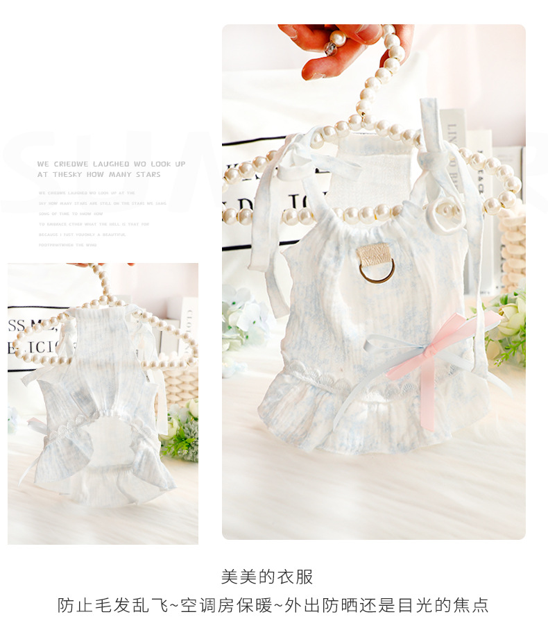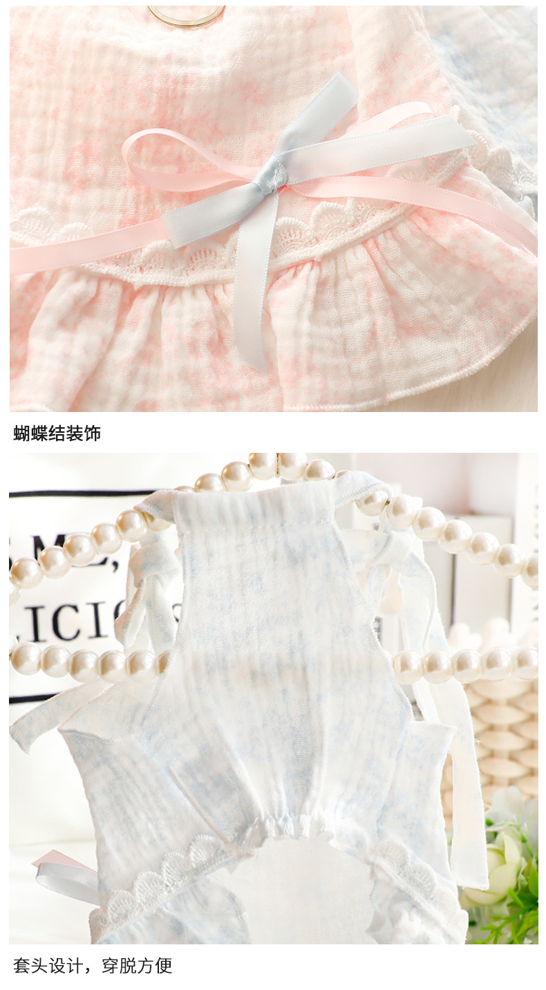 개 옷 봄과 여름 옷 얇은 고양이 공주 원피스 면사 레이스 업 작은 신선한 작은 개 테디 애완 동물 6665