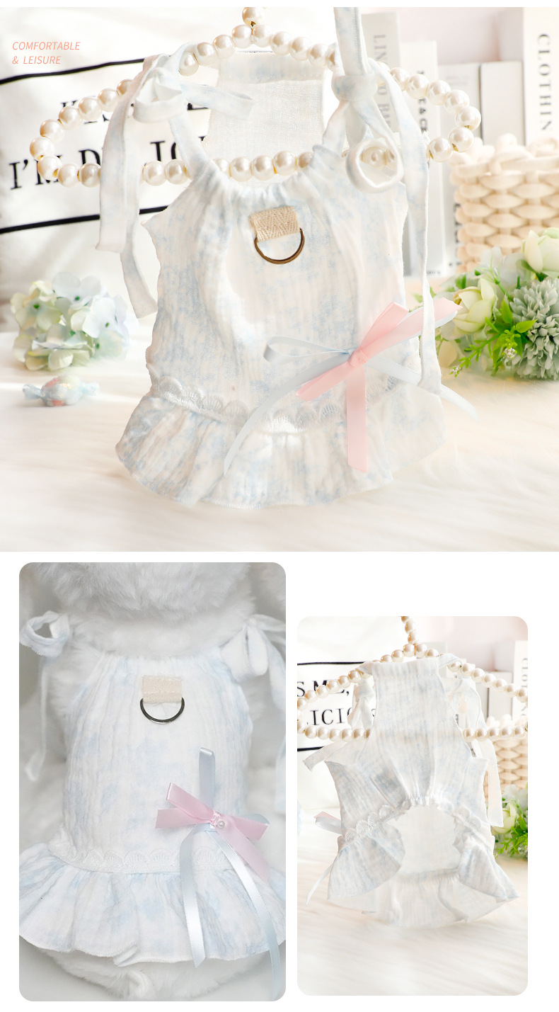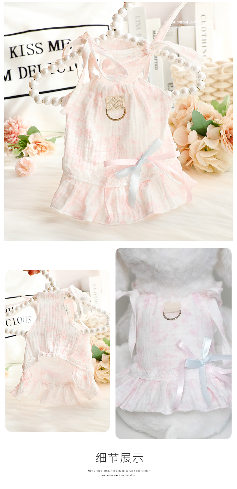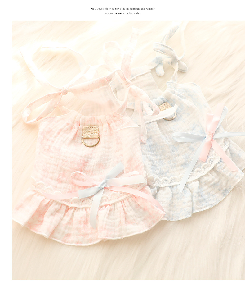 개 옷 봄과 여름 옷 얇은 고양이 공주 원피스 면사 레이스 업 작은 신선한 작은 개 테디 애완 동물 6665