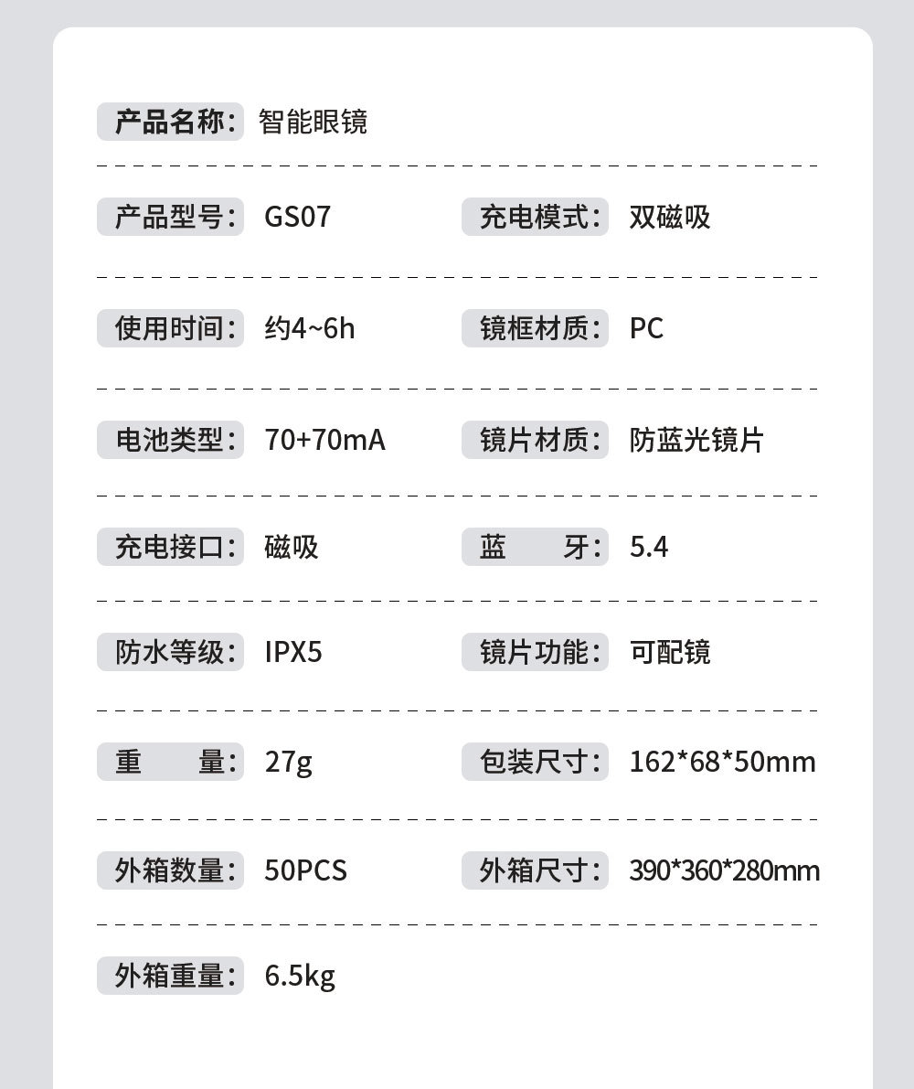 【AI 번역】GS07 블루투스 선글라스 고탄성 차광 순수 음질 즐기기 긴 배터리 수명 해외판 스마트스토어 가기