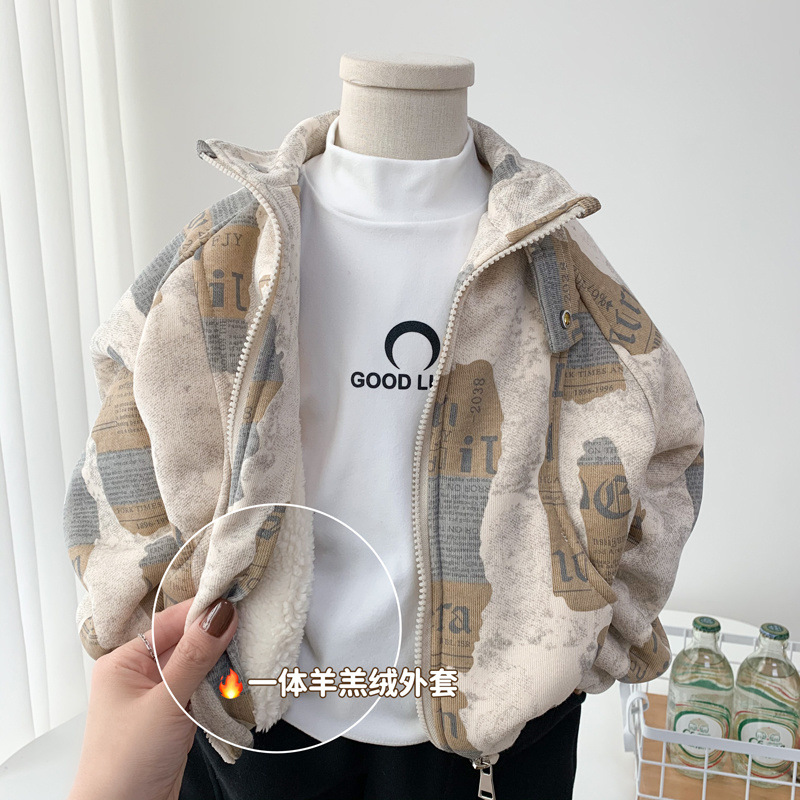 소년 원피스 양가죽 재킷 2025 겨울 어린이 수직 칼라 지퍼 재킷 잘 생긴 기모 패션 재킷