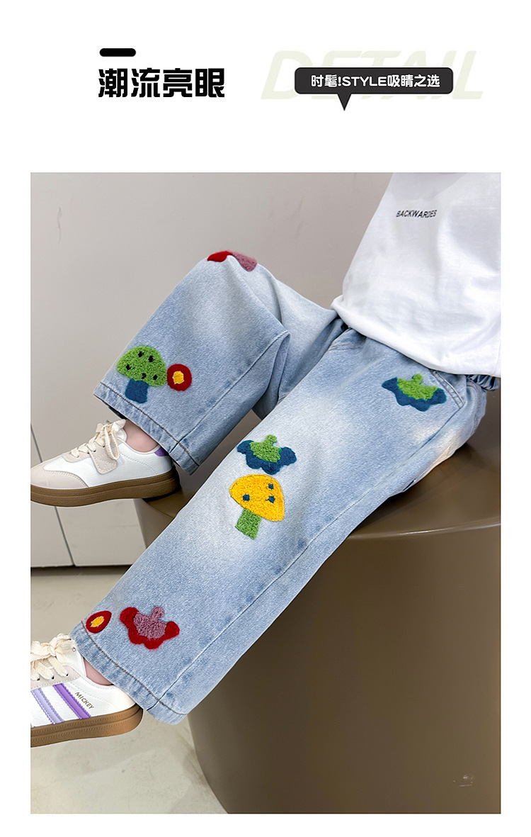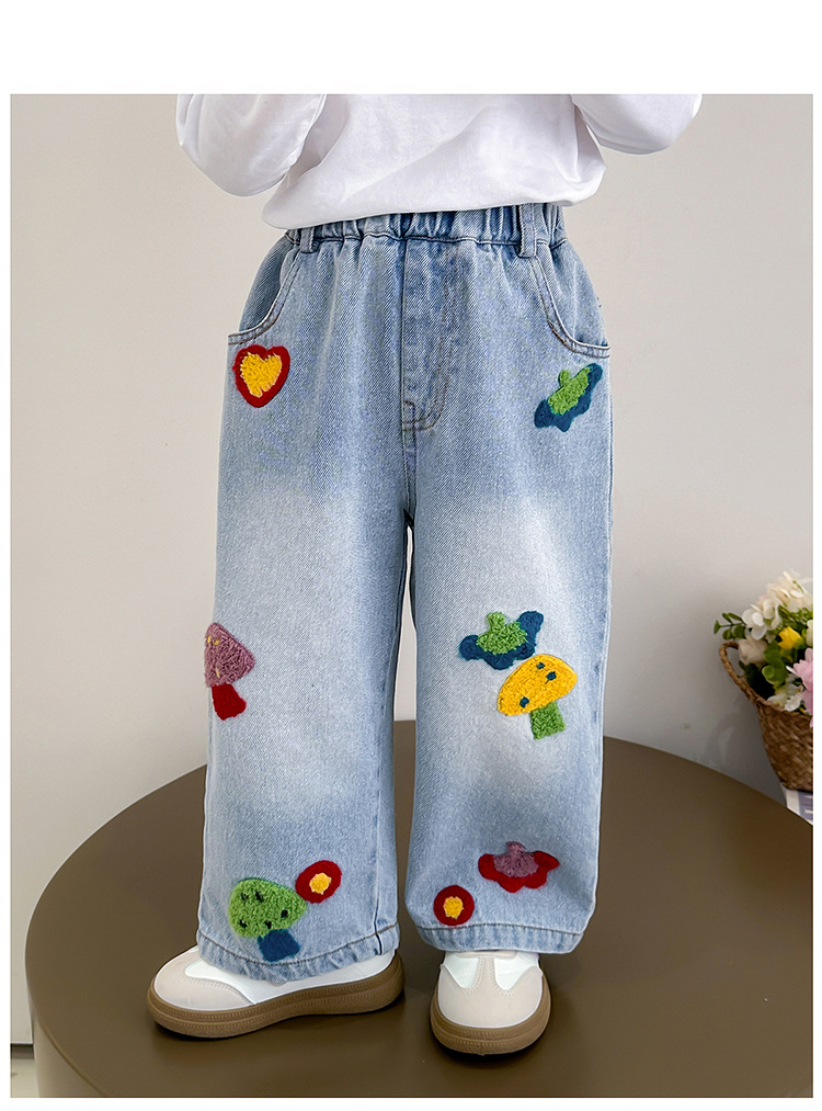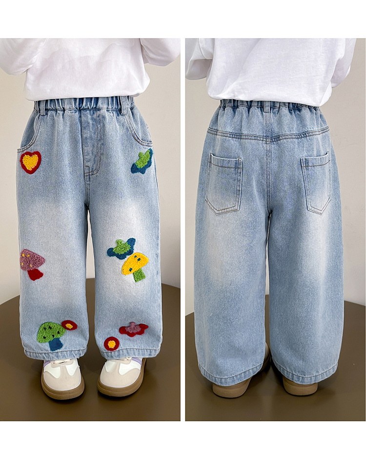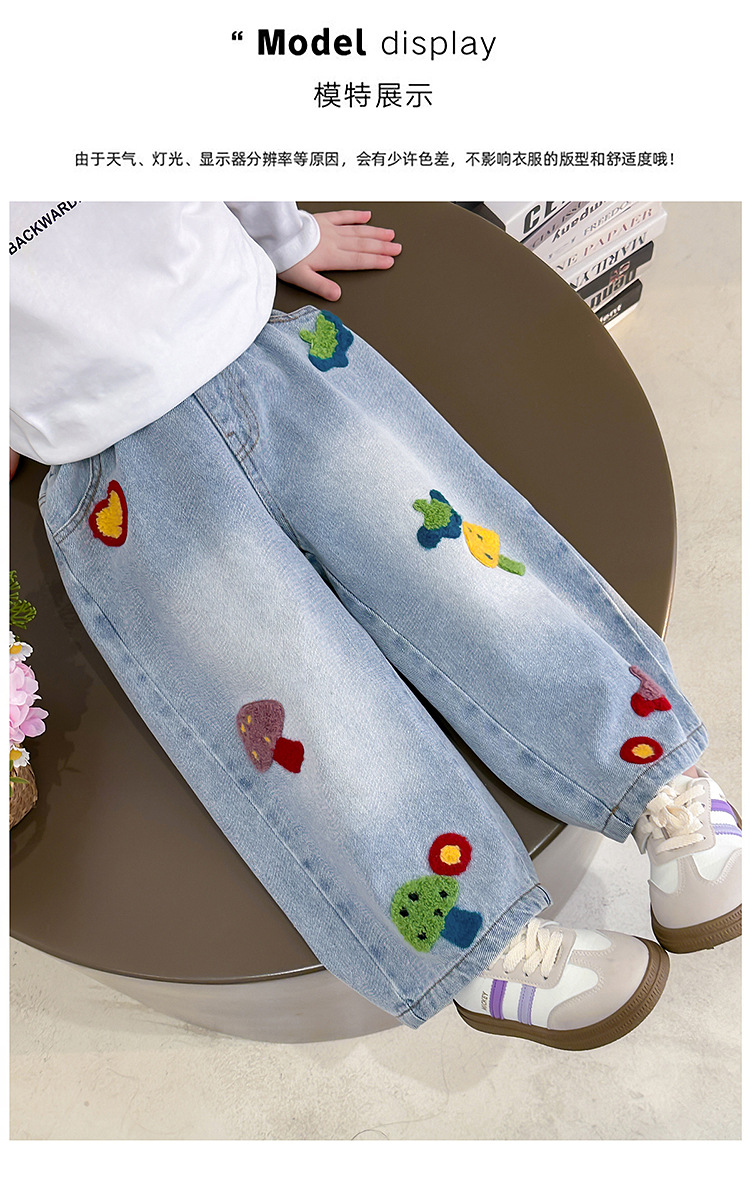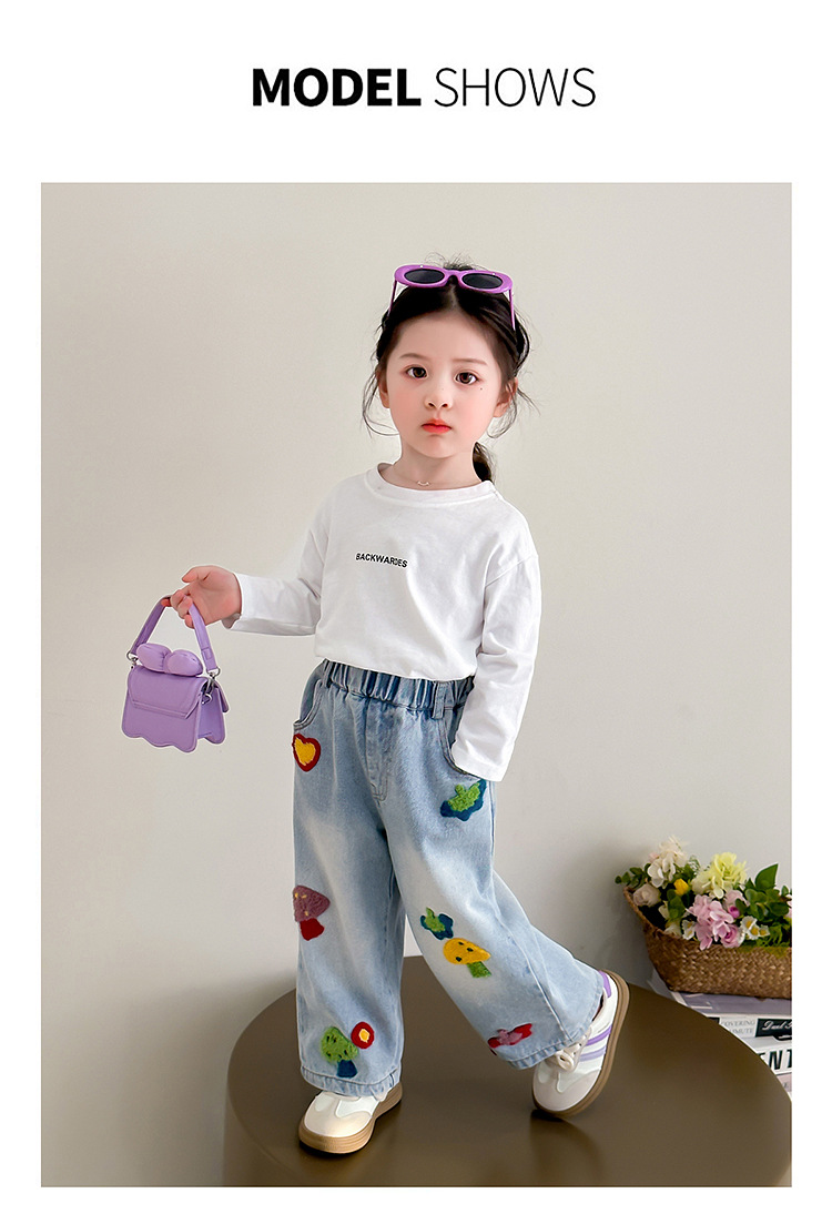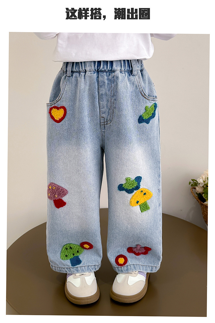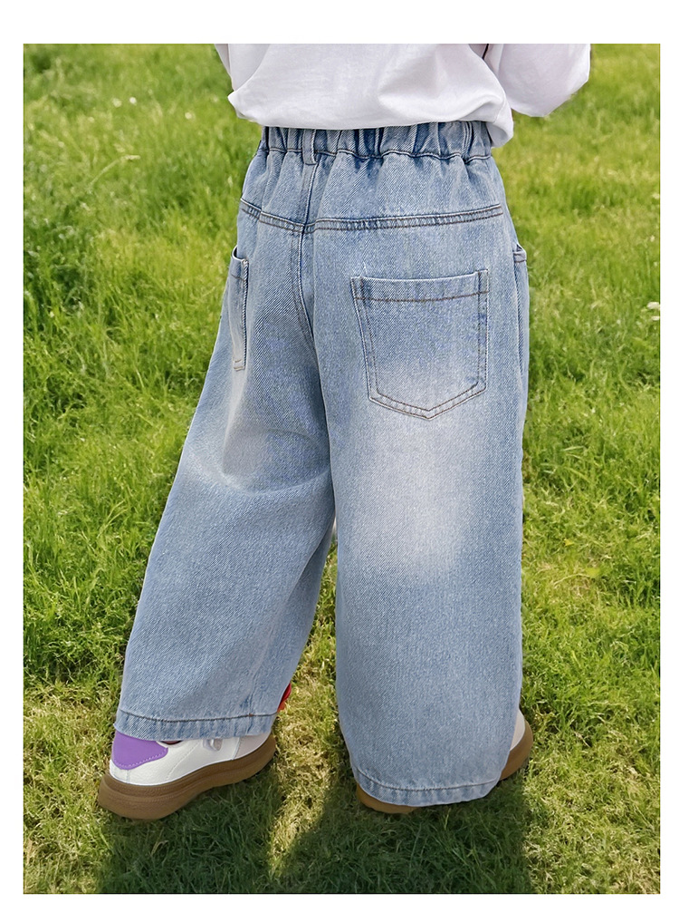 소녀 청바지 봄과 가을 유행 외국식 봄 아기 넓은 다리 바지 유행 멋진 봄 인터넷 연예인 튀긴 거리 어린이 바지스토어 가기