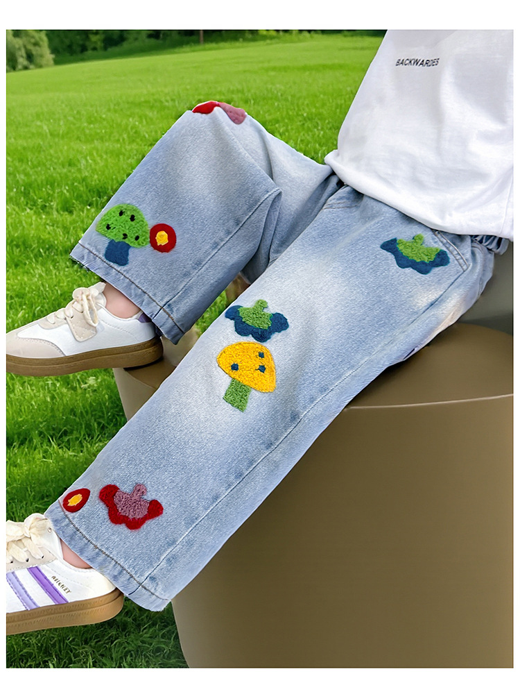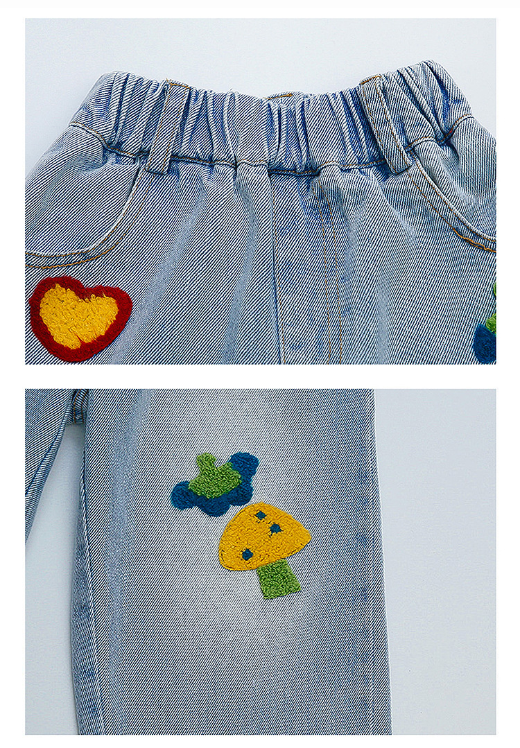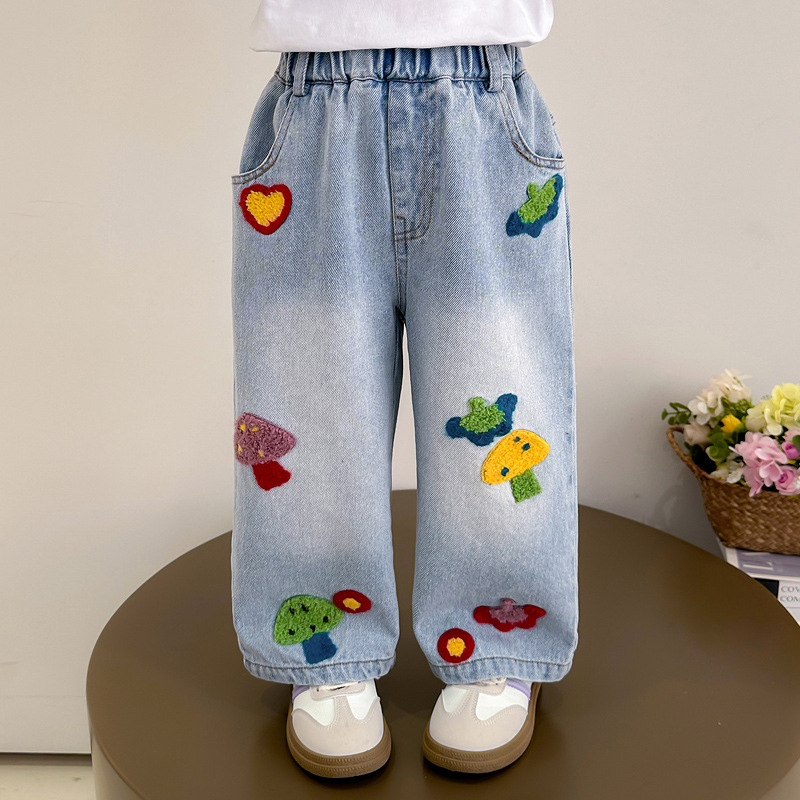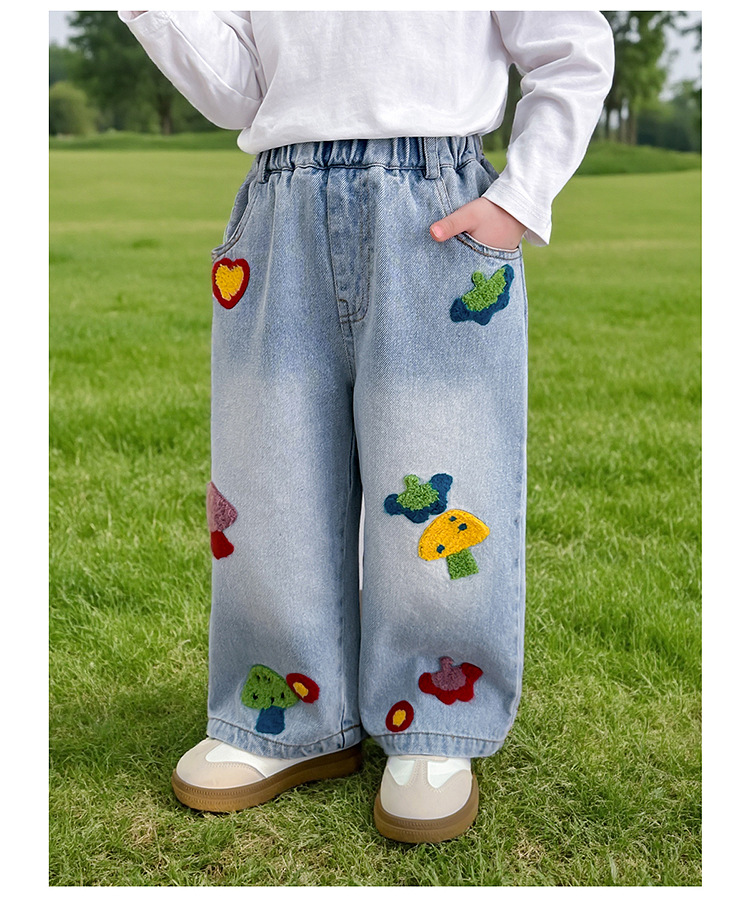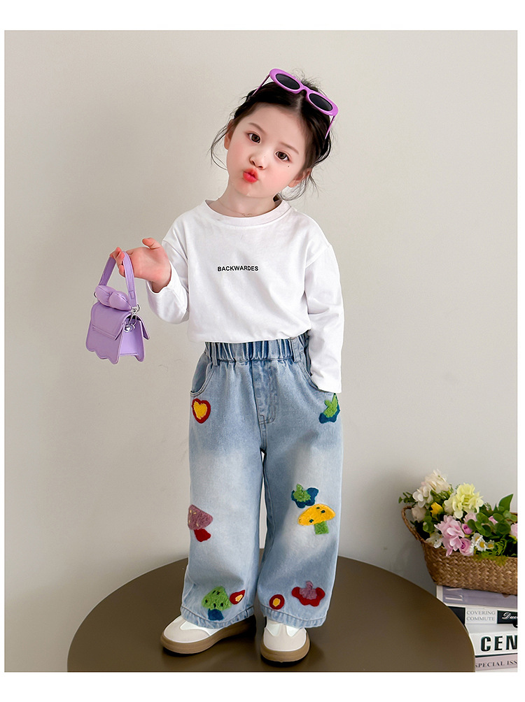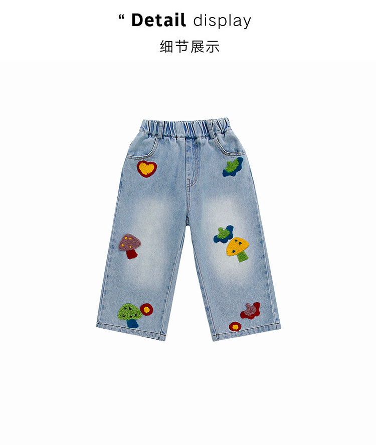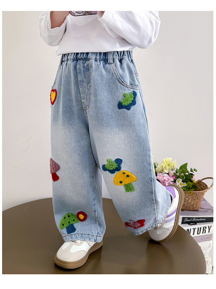 소녀 청바지 봄과 가을 유행 외국식 봄 아기 넓은 다리 바지 유행 멋진 봄 인터넷 연예인 튀긴 거리 어린이 바지스토어 가기