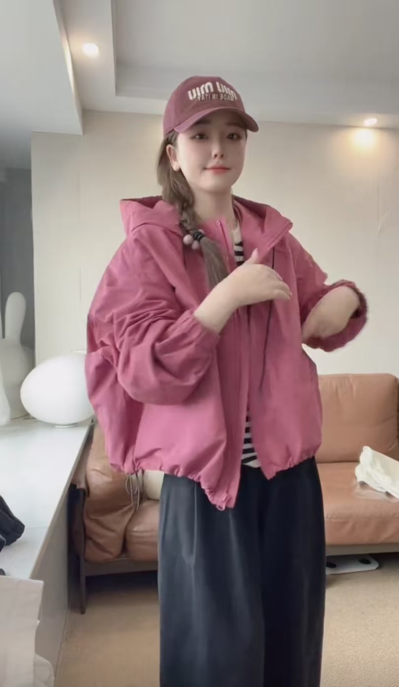 충전 옷 짧은 후드 재킷 여성 2025 봄 새로운 한국 느슨한 패션 우아한 올 매치 재킷 탑