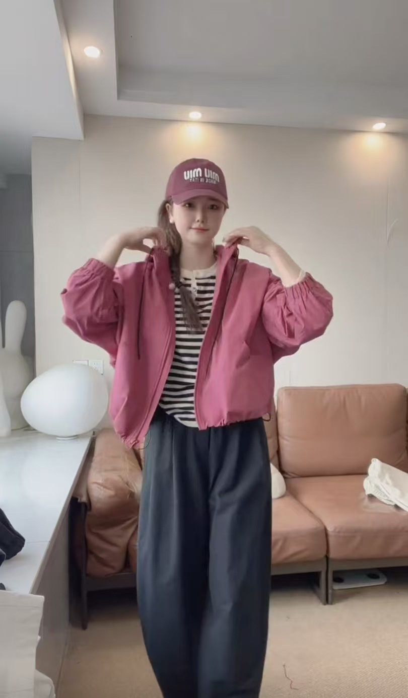 충전 옷 짧은 후드 재킷 여성 2025 봄 새로운 한국 느슨한 패션 우아한 올 매치 재킷 탑스토어 가기