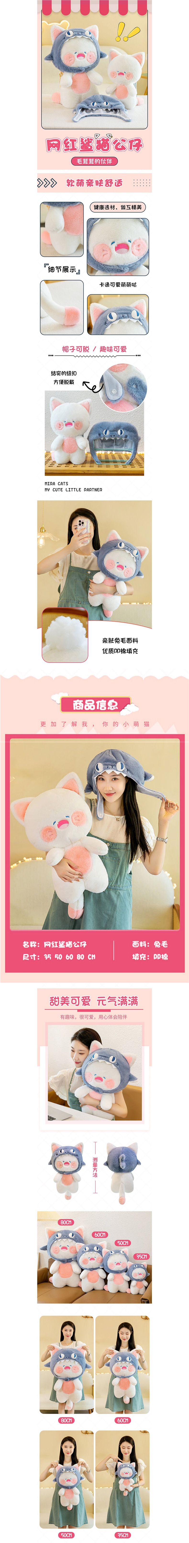 귀여운 상어 고양이 인형 봉제 장난감 고양이 잠자는 인형 소녀 인형 잠자는 베개 어린이 생일 선물스토어 가기