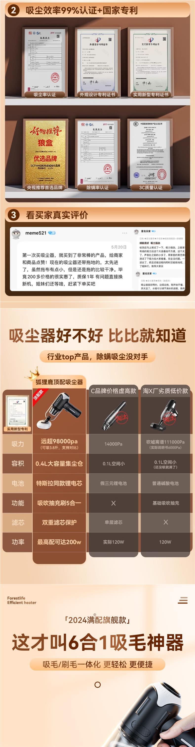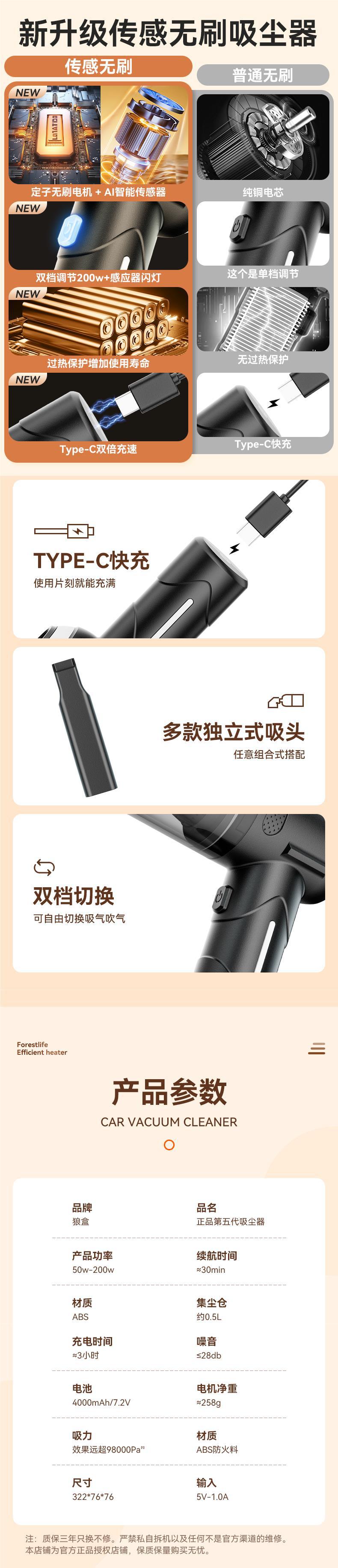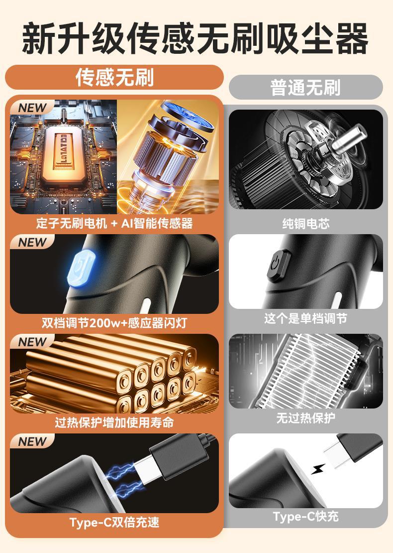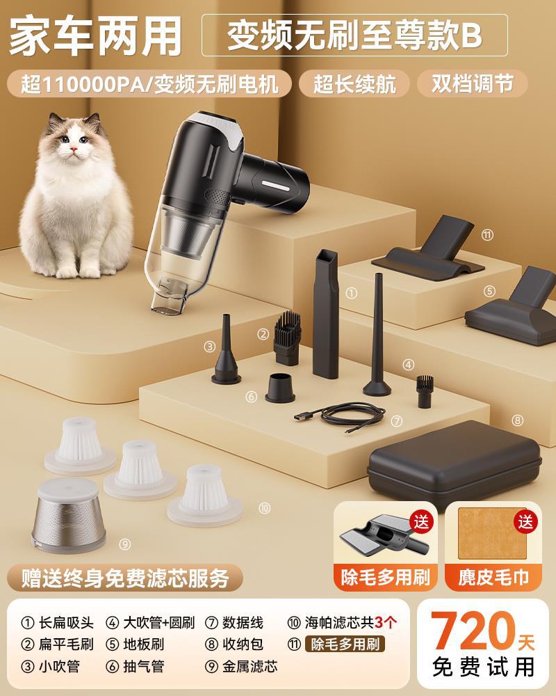 • [주파수 변환 브러시리스 최고 모델 B] 듀얼 속도 흡수 가능 2kg 헤비 + 풀 세트 심층 청소 세트 + Type-C 고속 충전