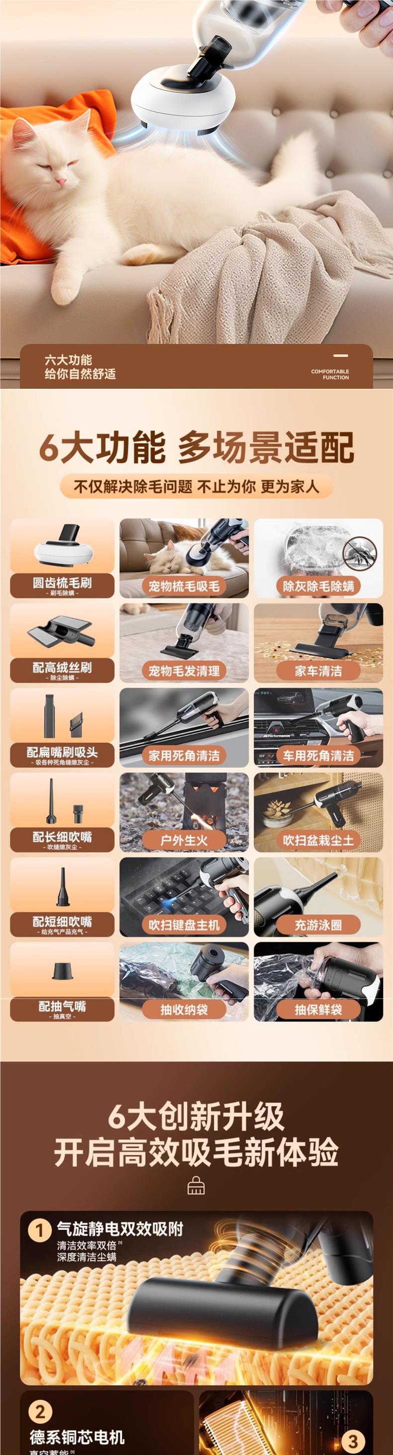 무선 진공 청소기 작은 애완 동물 머리 흡입 고양이 머리 흡입 유물 가정용 개 고양이 머리 휴대용 침대 도매스토어 가기