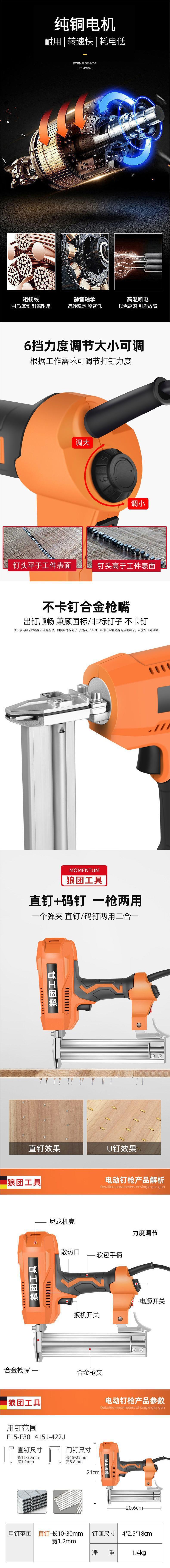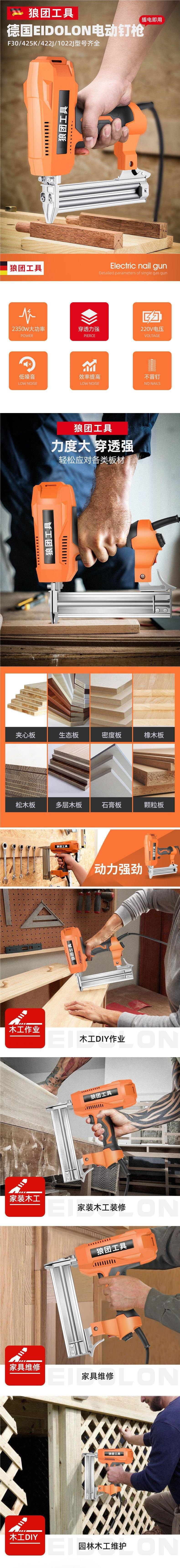 [2350W] 전기 네일 건 이중 목적 네일 건 F30/422J 스트레이트 네일 로우 네일 건 목공 도구 에어 네일 건스토어 가기