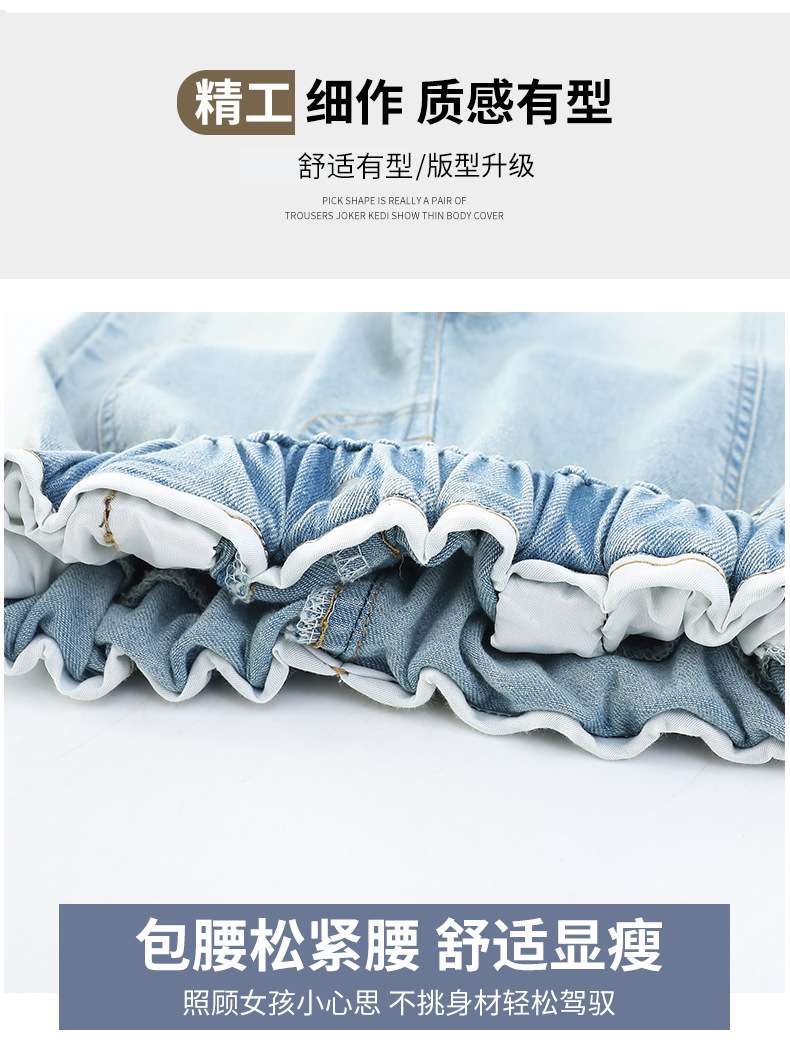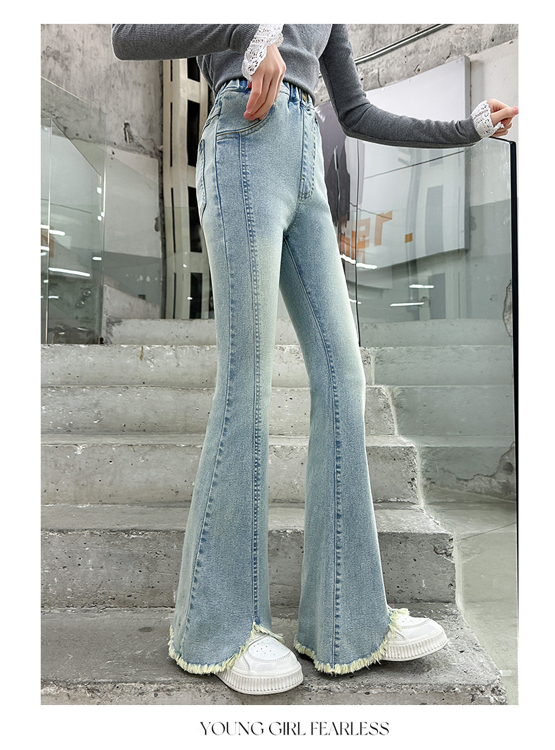 소녀 꽃 바지 봄과 가을 소녀 캐주얼 세련된 청바지 봄 큰 어린이 봄 착용 스트레치 어린이 바지