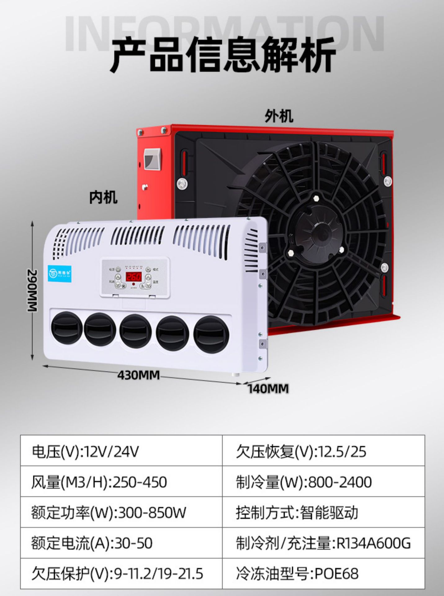 대형 트럭 DC 인버터 12v 냉동 자동차 로더 수정 주차 전기 에어컨 자동차 24v 숨겨진 버전