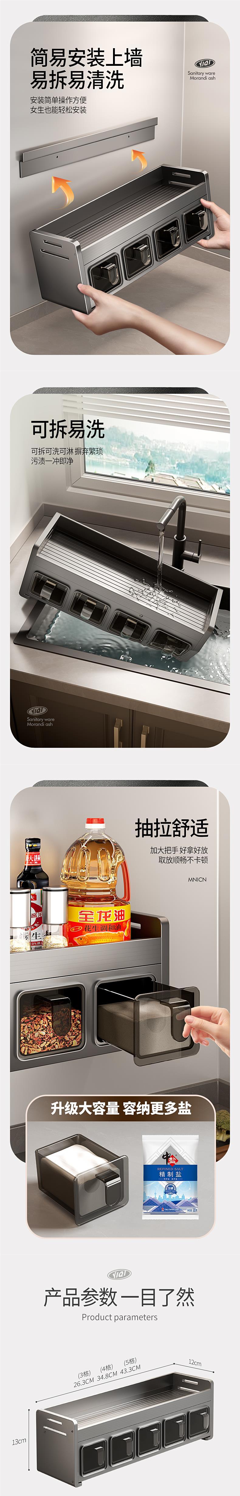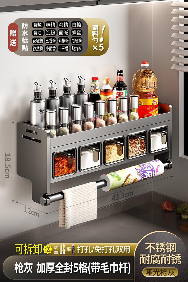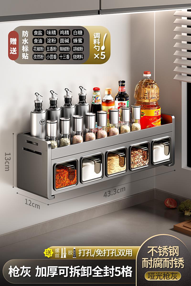 주방 선반 고급 가정용 천공되지 않은 벽 매달린 조미료 상자 오일, 소금, 소스 및 식초 저장 랙 조미료 항아리 도매