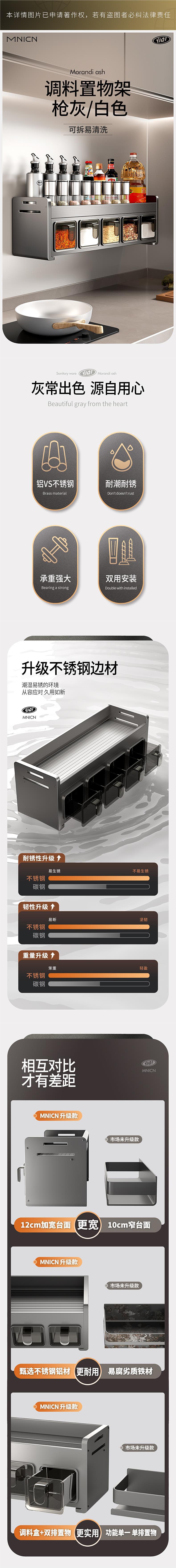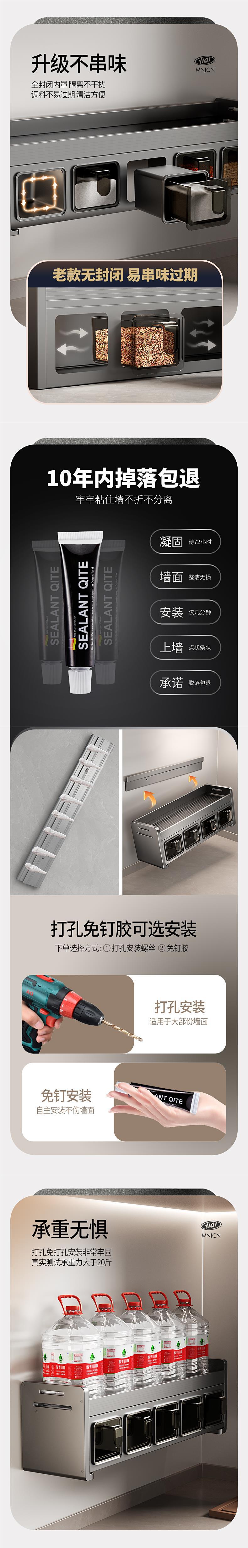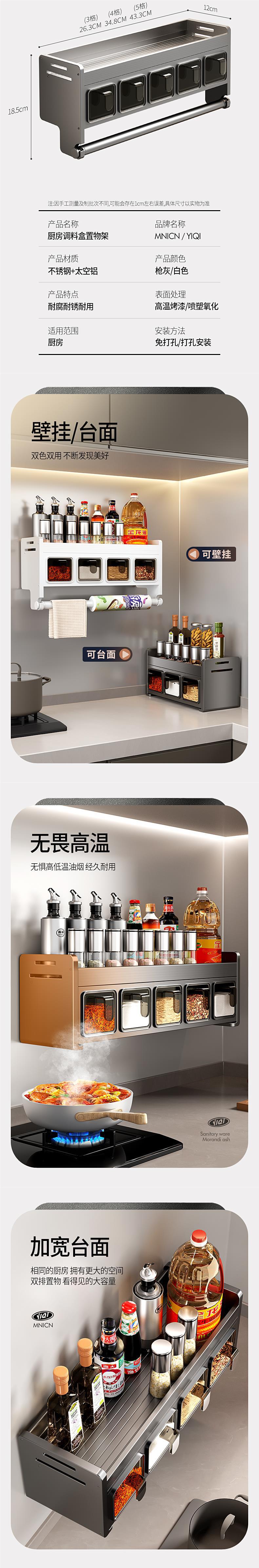 주방 선반 고급 가정용 천공되지 않은 벽 매달린 조미료 상자 오일, 소금, 소스 및 식초 저장 랙 조미료 항아리 도매