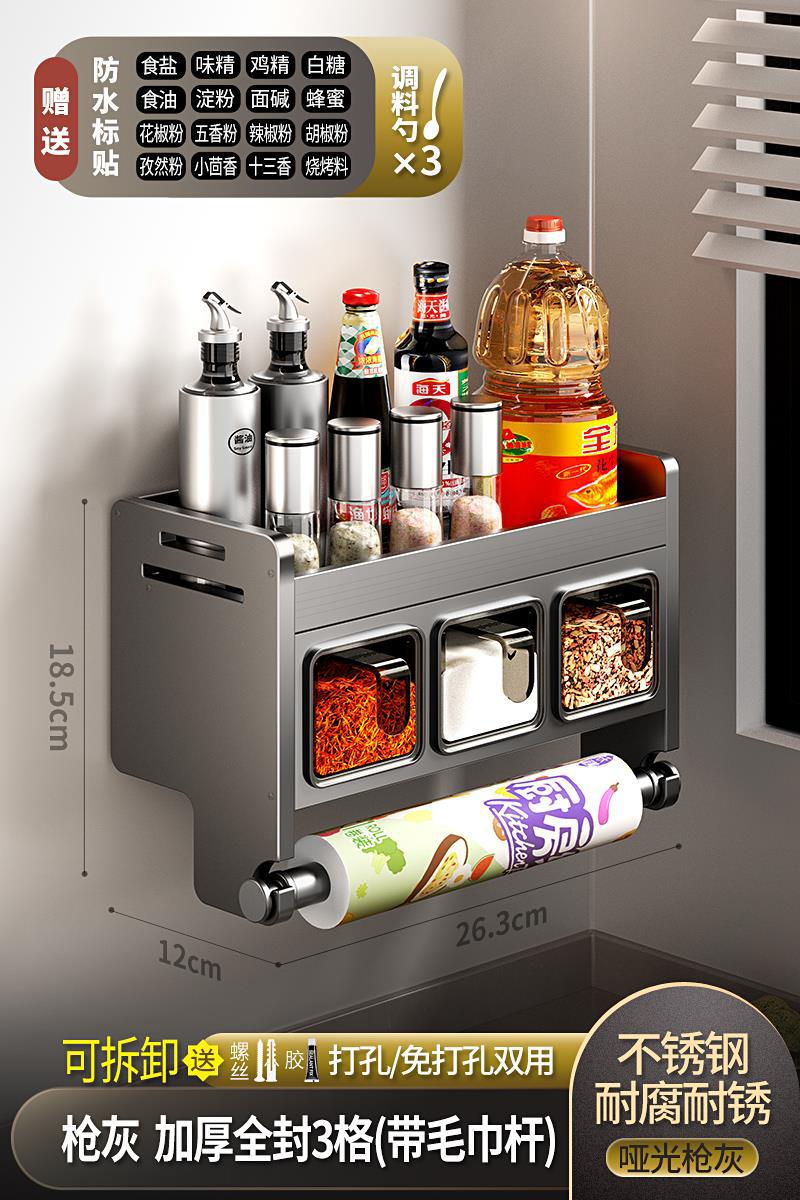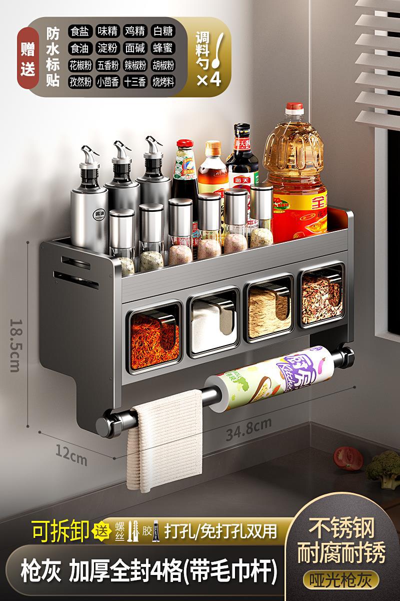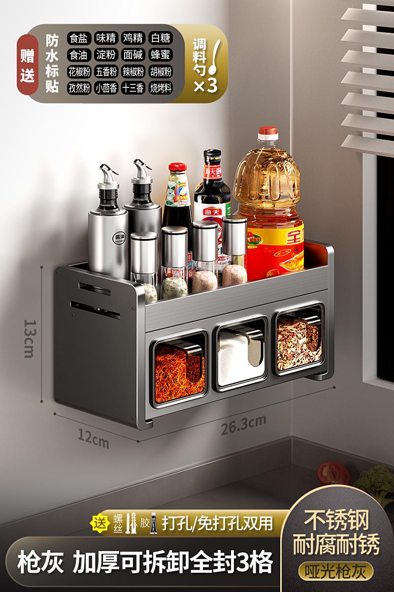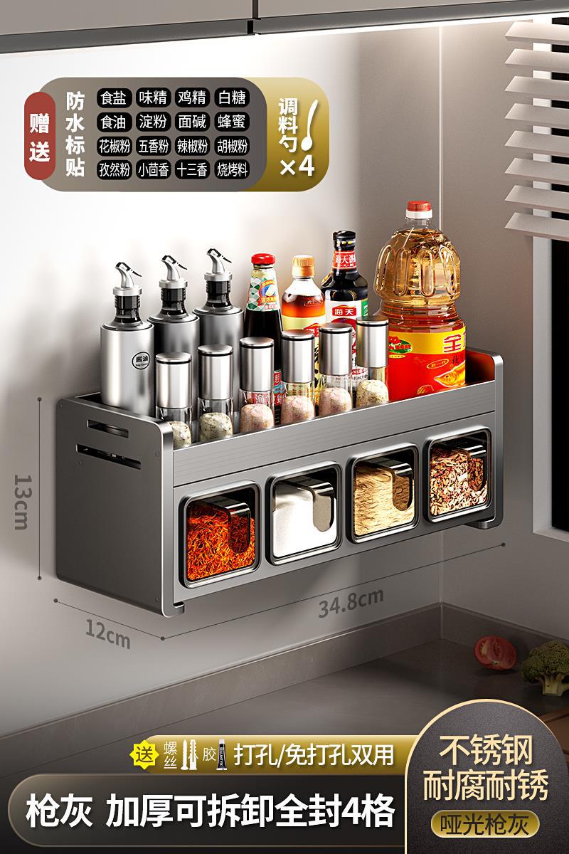 주방 선반 고급 가정용 천공되지 않은 벽 매달린 조미료 상자 오일, 소금, 소스 및 식초 저장 랙 조미료 항아리 도매스토어 가기