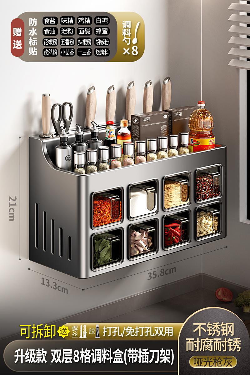 • [칼 홀더가 포함된 업그레이드된 이중 레이어 완전 밀봉 8칸] [무료 스푼 + 방수 라벨]