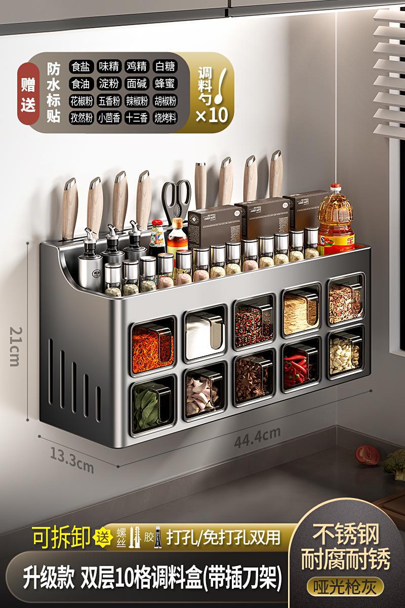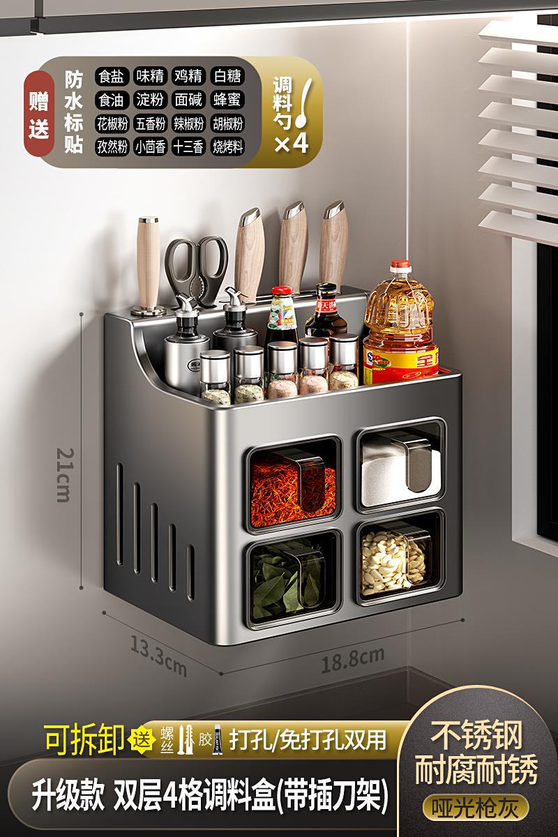 • [칼 홀더가 포함된 업그레이드된 이중 레이어 4칸 양념 상자] [무료 스푼 + 방수 라벨]