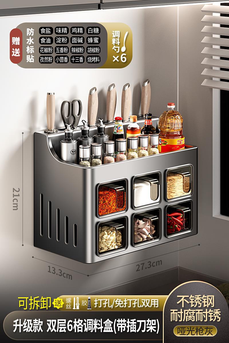• [칼 홀더가 포함된 업그레이드된 이중 레이어 완전 밀봉 6칸] [무료 스푼 + 방수 라벨]