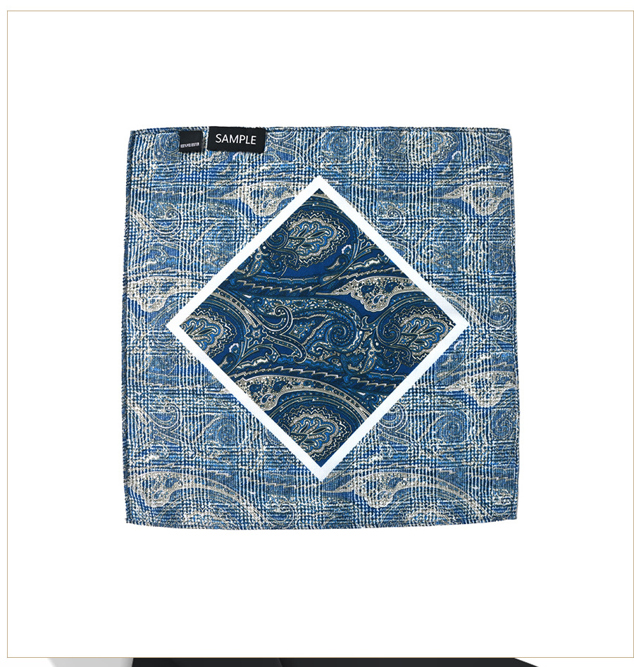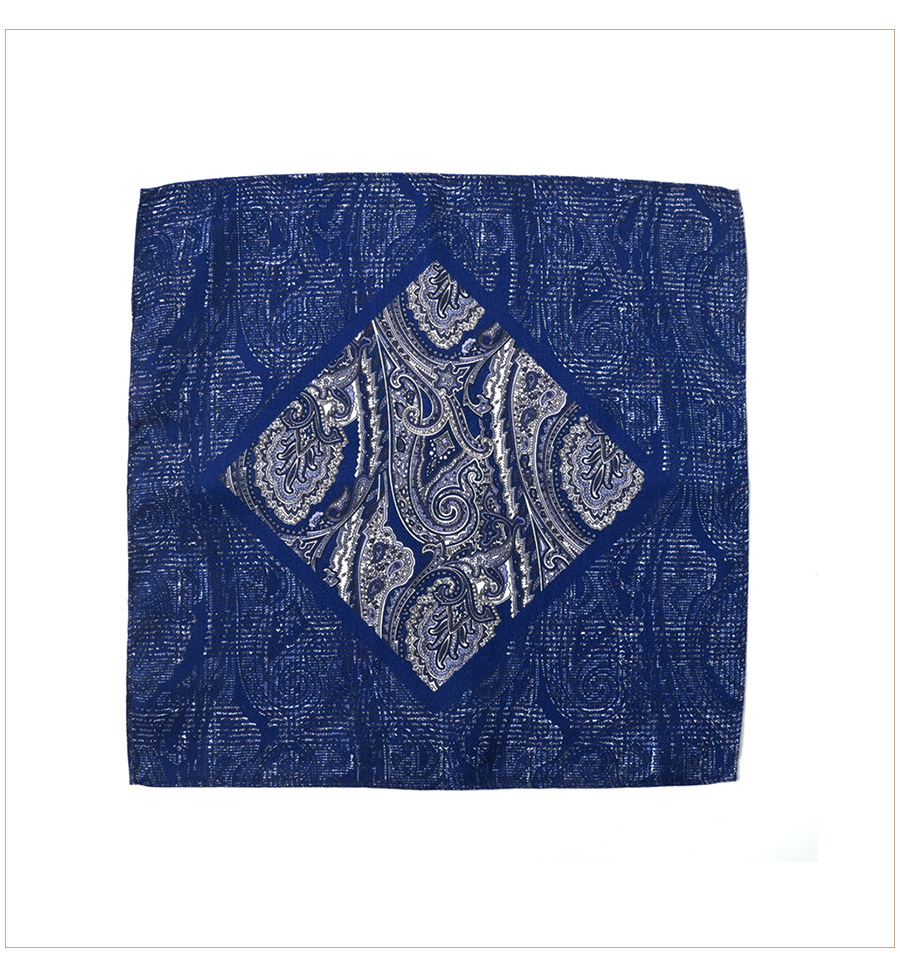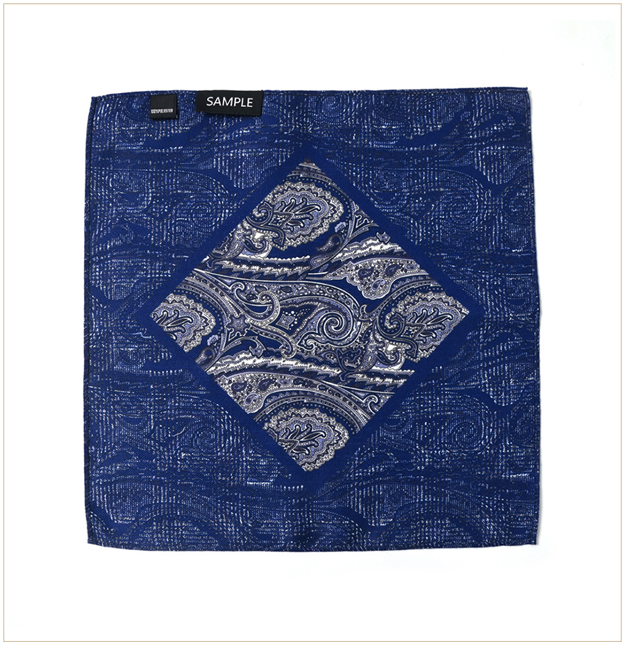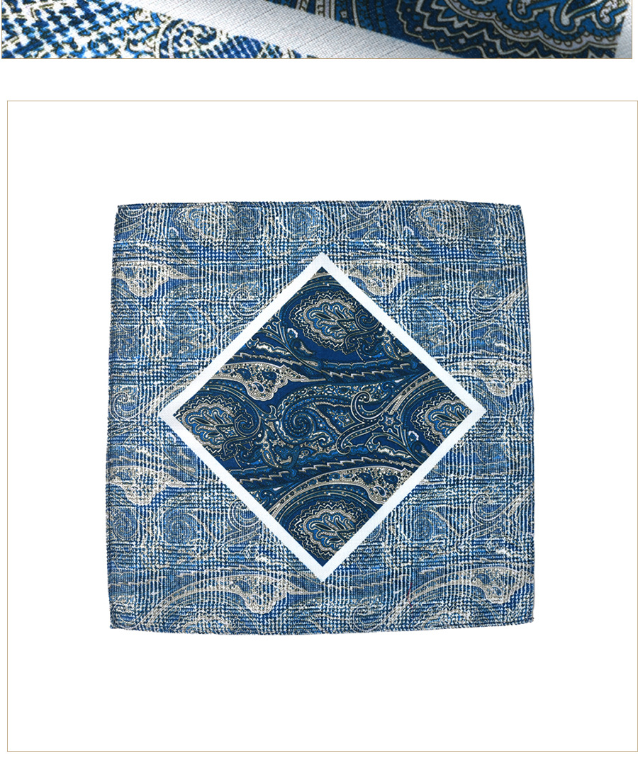 새로운 스타일 전통적인 레트로 스타일 절묘한 기하학적 다이아몬드 인쇄 작은 광장 발리 원사 데님 블루 포켓 손수건